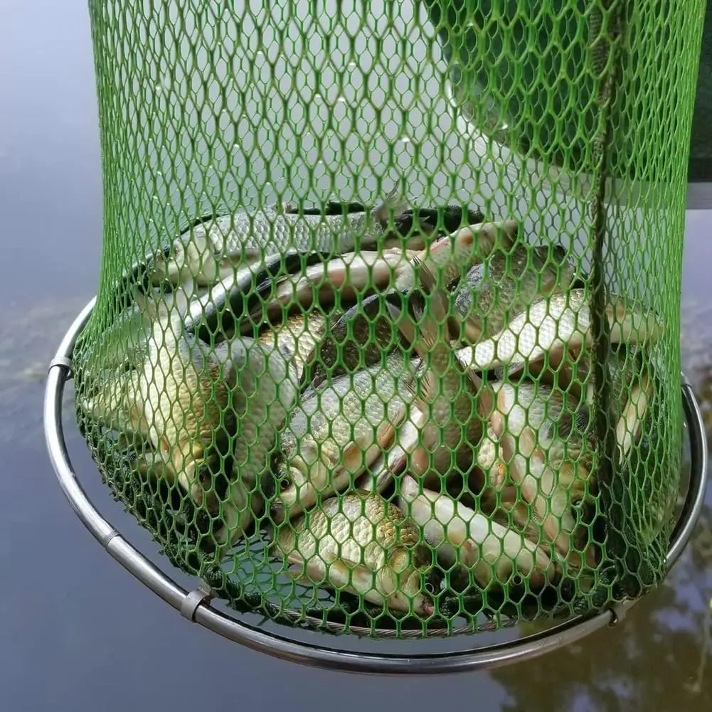 Material: Thick woven nano mesh fabric+wear-resistant tasselSize: D25/33/40cm-0.8/1.5/2/1.6/2.5mPackage includes: 1 live fish bag25cm live fish bag without bottom handle/25-40cm without anti jump strap