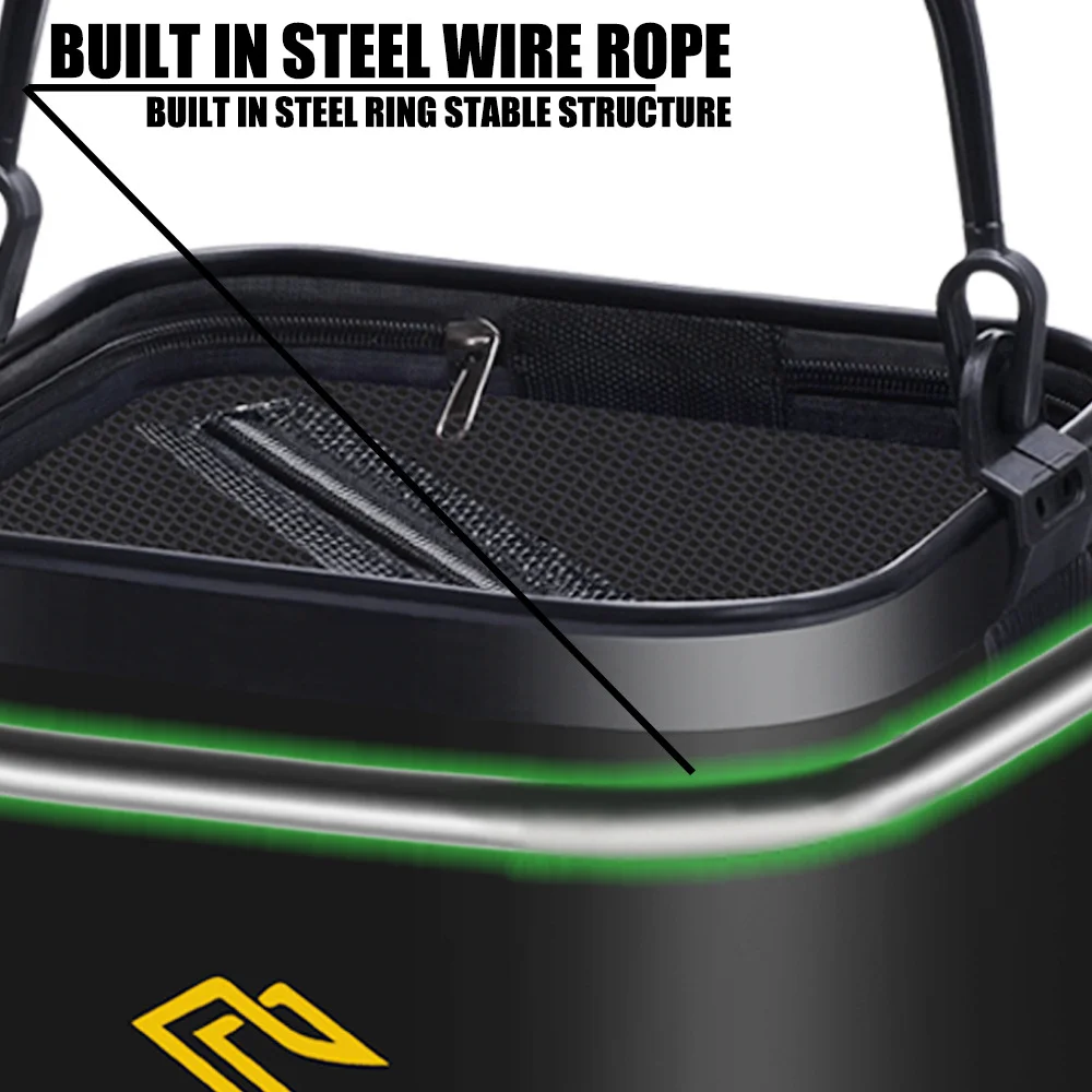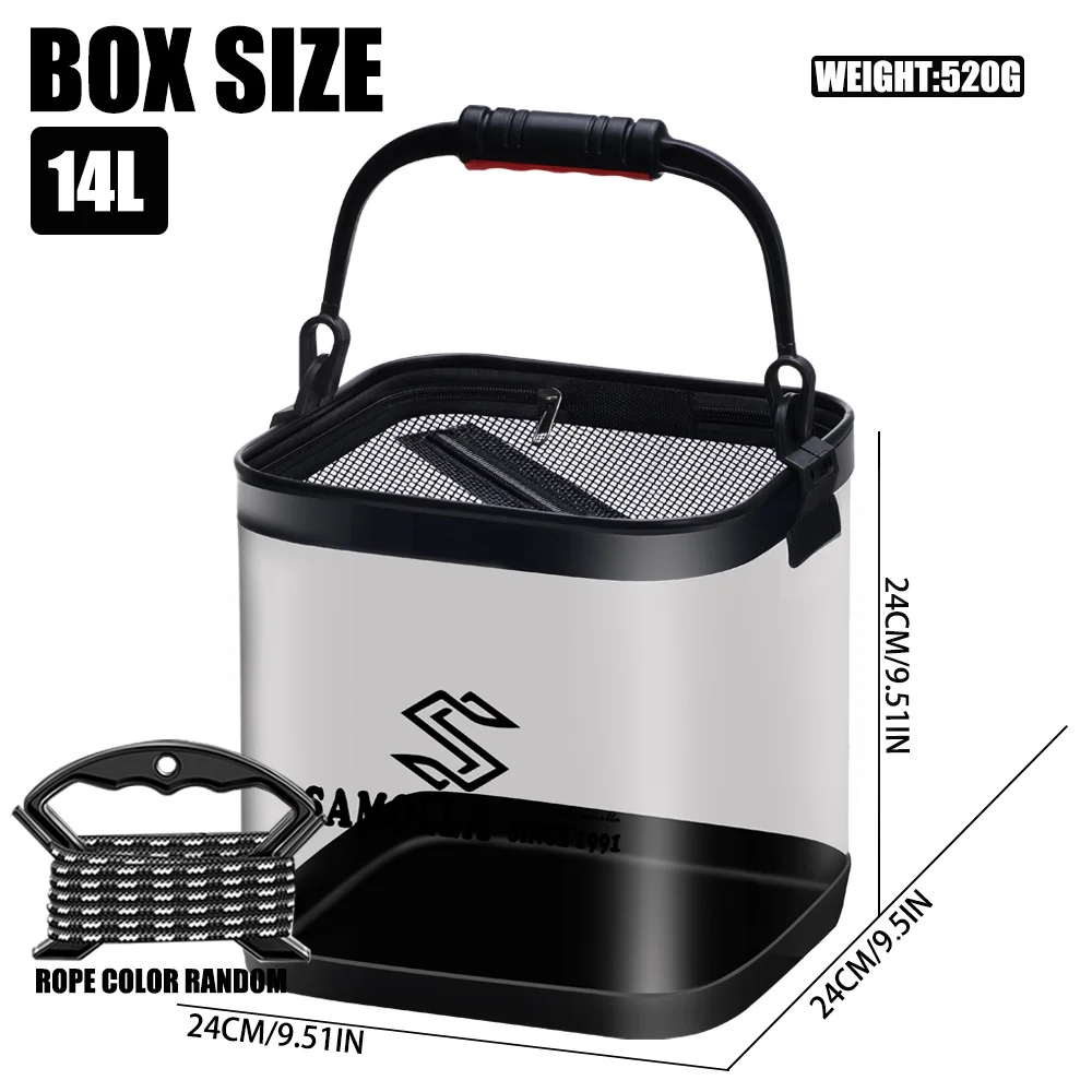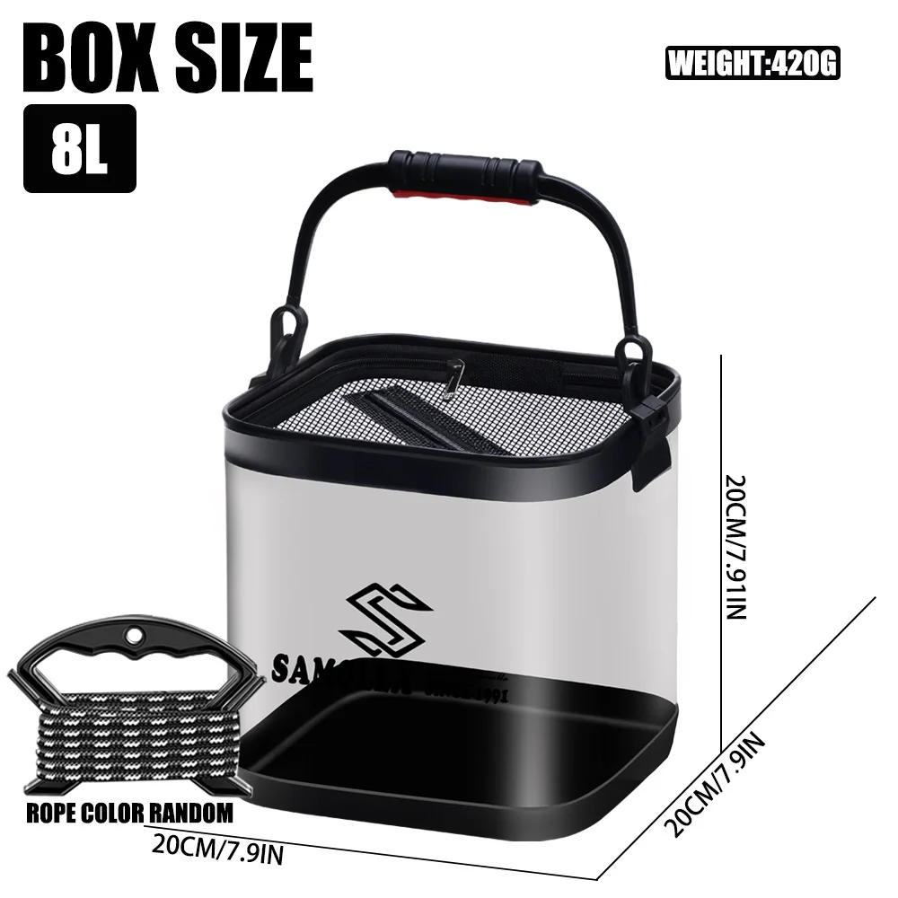 2025 NUEVO cubo para peces vivos, cubo visible, cubo para peces reforzado y grueso, cubo de pesca de barril plegable multifuncional con cuerda