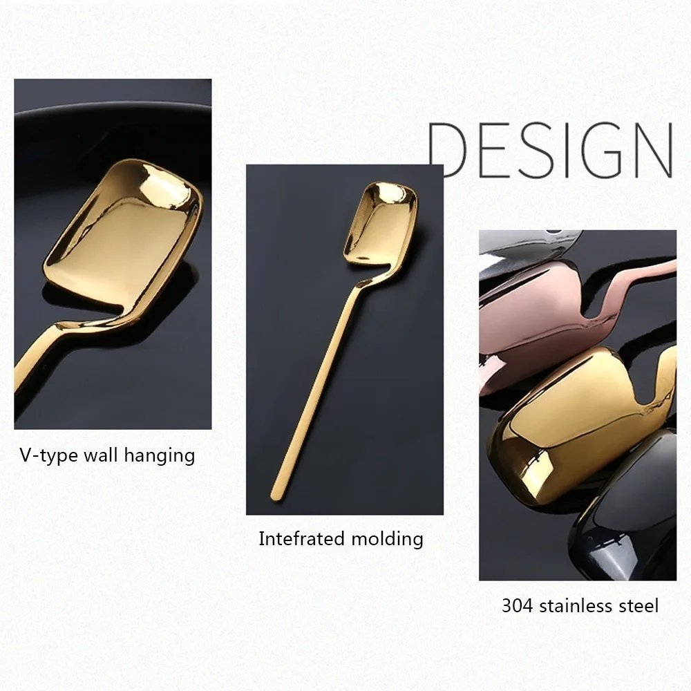 Cuchara colgante de pared con mango largo creativo, cuchara agitadora de postre de acero inoxidable para mezclar helado, té y café, vajilla para fiesta