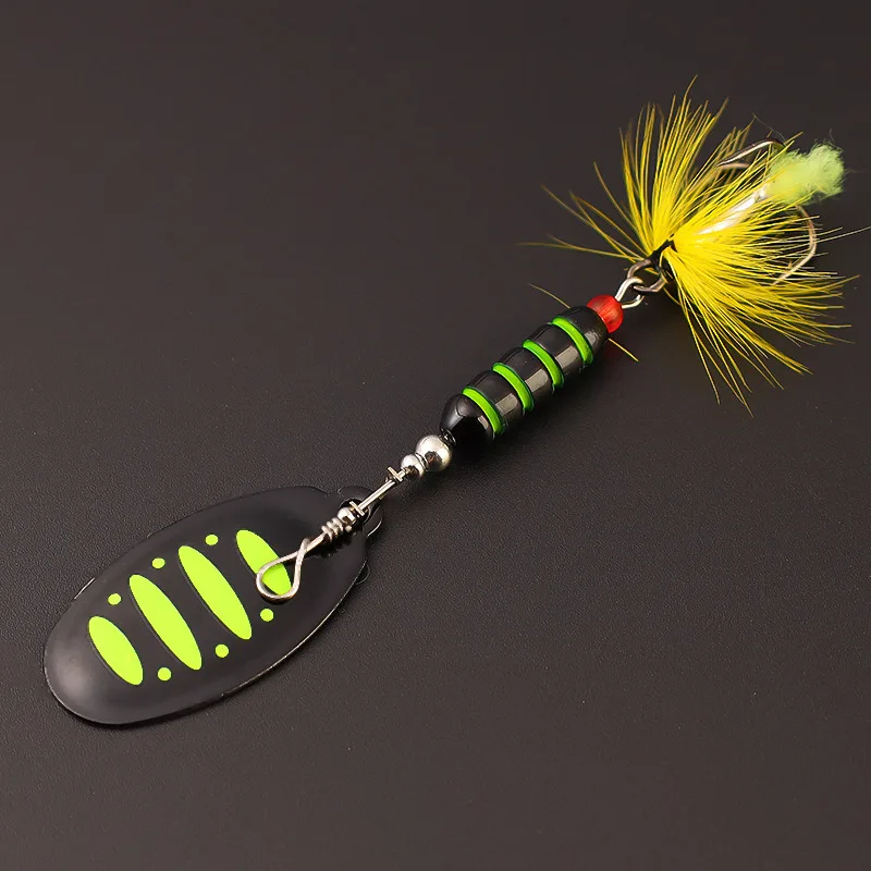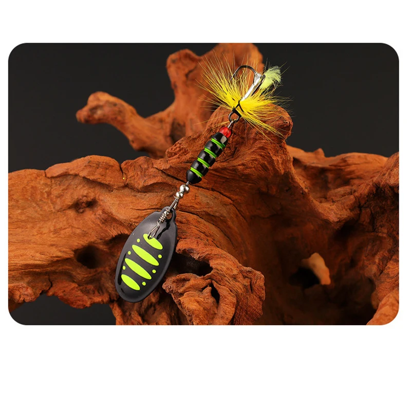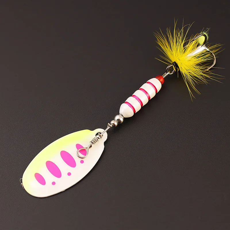 Cuchara giratoria de 7g, cebo de Metal, señuelo de pesca con lentejuelas, Crankbait, cebos para lubina, trucha, perca, Lucio, gancho de cebo giratorio de largo alcance