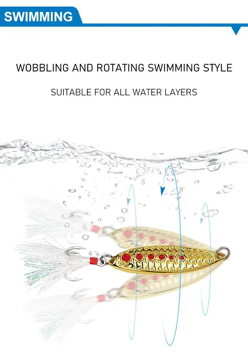 1 cuchara de piezas de Metal 3g/5g/7g/10g/15g/20g, cuchara giratoria, señuelos que se hunden lentamente, señuelos de Lucio, trucha, aparejos de carpa, pesca Artificial de fundición dura