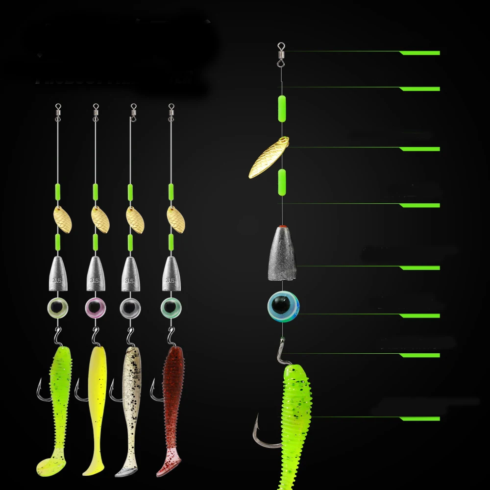 Cuchara de hélice de pesca de 3,5g, 5g, 7g, 10g, alambre de carbono, herramienta de pesca de silicona, accesorios, Kit de gancho de aparejo Texas