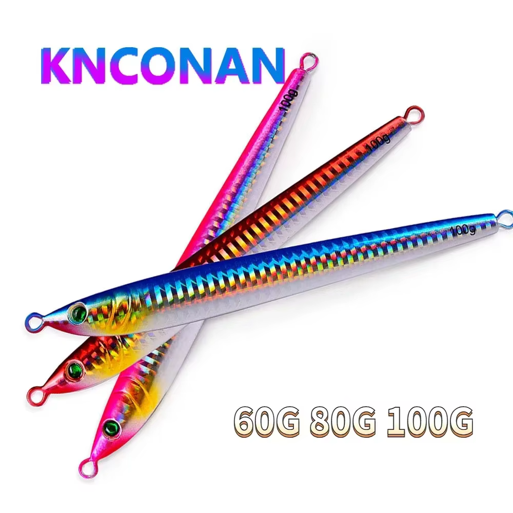 Cuchara de Jigging de Metal, 60g, 80g, 100g, cebo Artificial, señuelo de pesca de plantilla rápida, ojos 3D, aparejos de pesca súper duros sin gancho