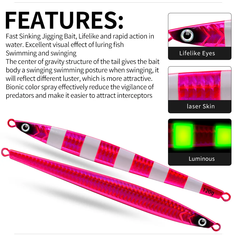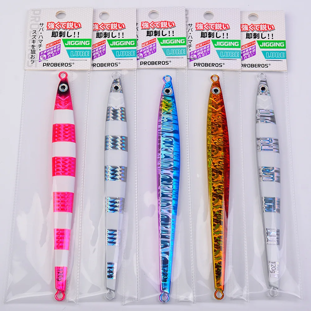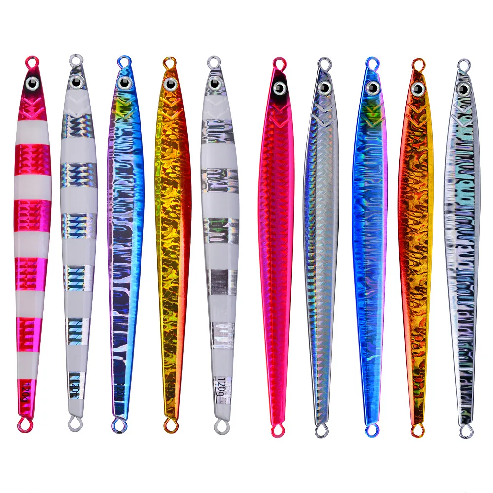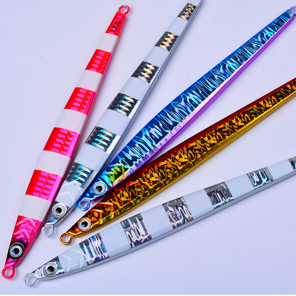 Cuchara de Jigging de Metal con tira larga, cebo Artificial de 80g, 100g, 120g, señuelo de pesca de plantilla rápida, aparejos de pesca de plomo súper duro