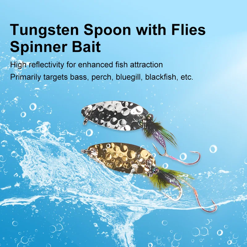 Cebo giratorio de cuchara de tungsteno: superficie reflectante, anzuelo de sonajero, objetivos de lubina, perca, aronia, pez negro
