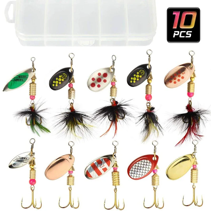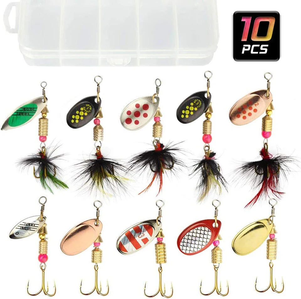 Características de los productos:10 piezas de alta calidad holográfica Spinner Lure kit viene con colores brillantes y tamaños surtidos.
