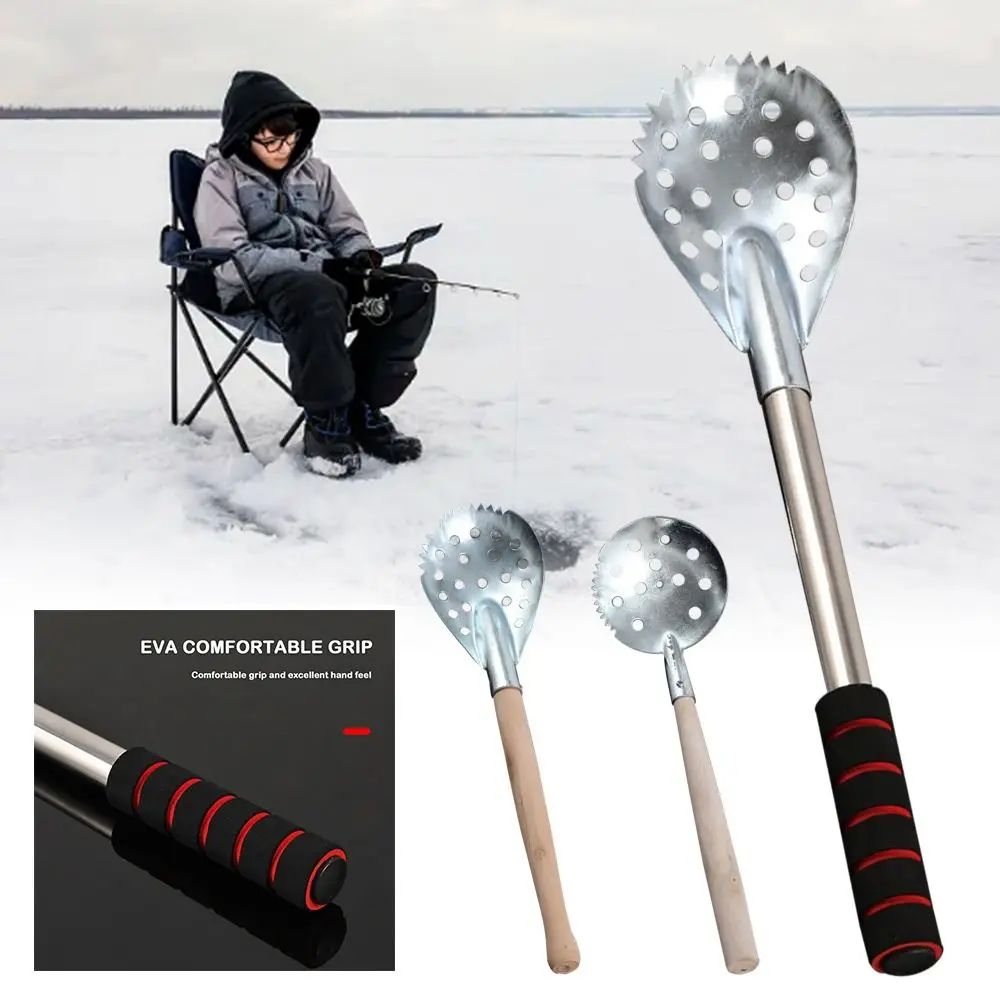 Material: Metal, Wood Size Chart:as picture shown Color:As picture shown Package Includes:1PC Ice Fishing Skimmer Scoop It is suitable for take to outdoor for fishing, water angling, and ice fishing activities. Description: There is no doubt that you can free your hands when outside fishing with this tool, which has high stability to hold and support your fish, it will be anti-scratch and wear-resistant to use due to the solid texture and be effective to breaking ice. That you can take it to anywhere to use with its compact mini size, and the lightweight texture is portable with long lifespan due to the solid texture and be portable to store in bags. By making with wood and galvanized iron materials, this strainer is solid and wear-resistant. Package Included: 1x pc