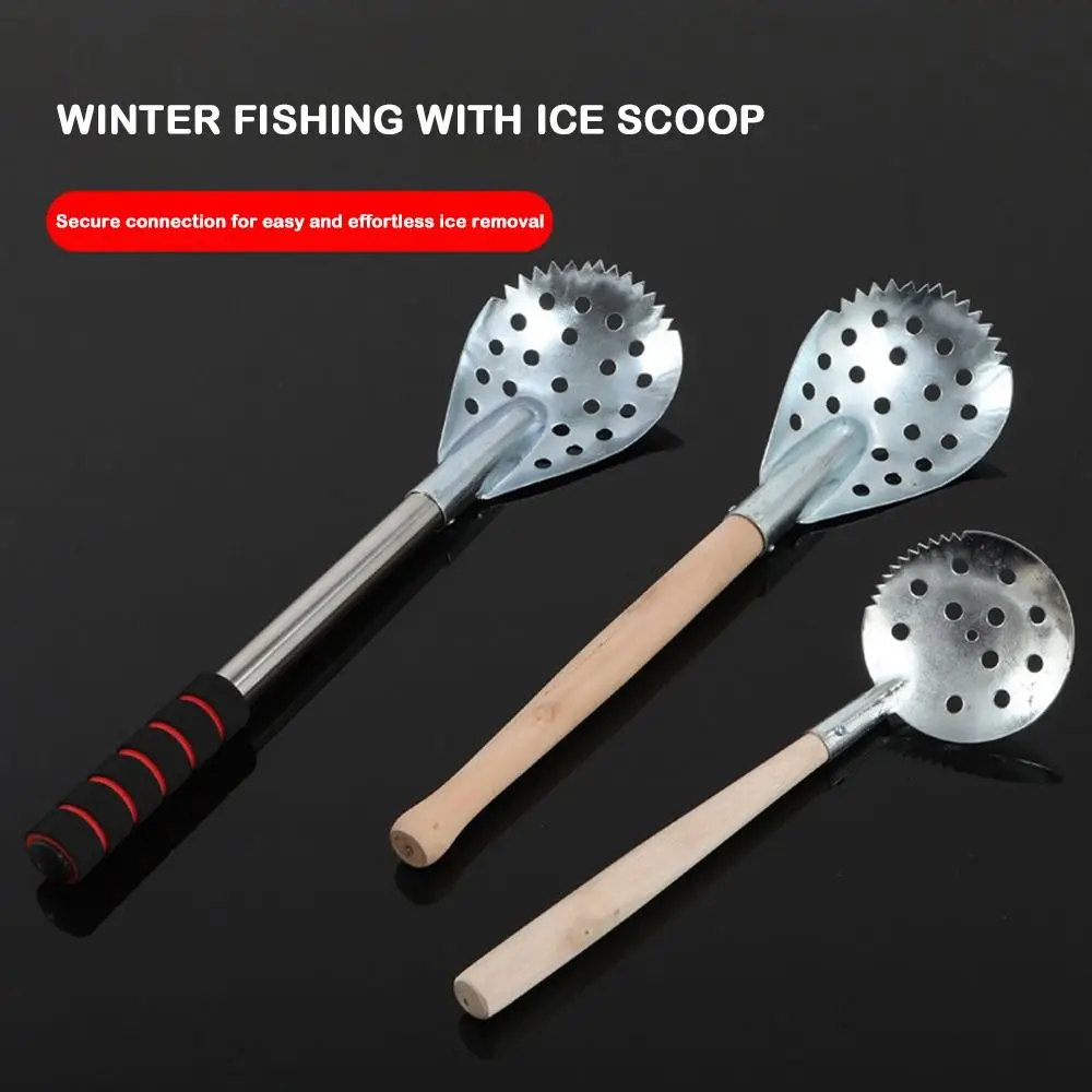Material: Metal, Wood Size Chart:as picture shown Color:As picture shown Package Includes:1PC Ice Fishing Skimmer Scoop It is suitable for take to outdoor for fishing, water angling, and ice fishing activities. Description: There is no doubt that you can free your hands when outside fishing with this tool, which has high stability to hold and support your fish, it will be anti-scratch and wear-resistant to use due to the solid texture and be effective to breaking ice. That you can take it to anywhere to use with its compact mini size, and the lightweight texture is portable with long lifespan due to the solid texture and be portable to store in bags. By making with wood and galvanized iron materials, this strainer is solid and wear-resistant. Package Included: 1x pc