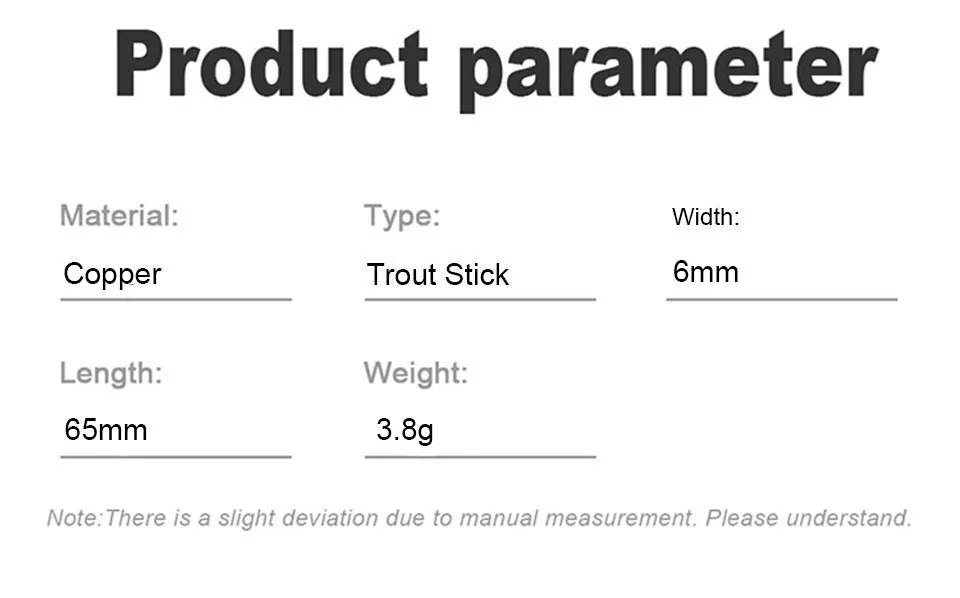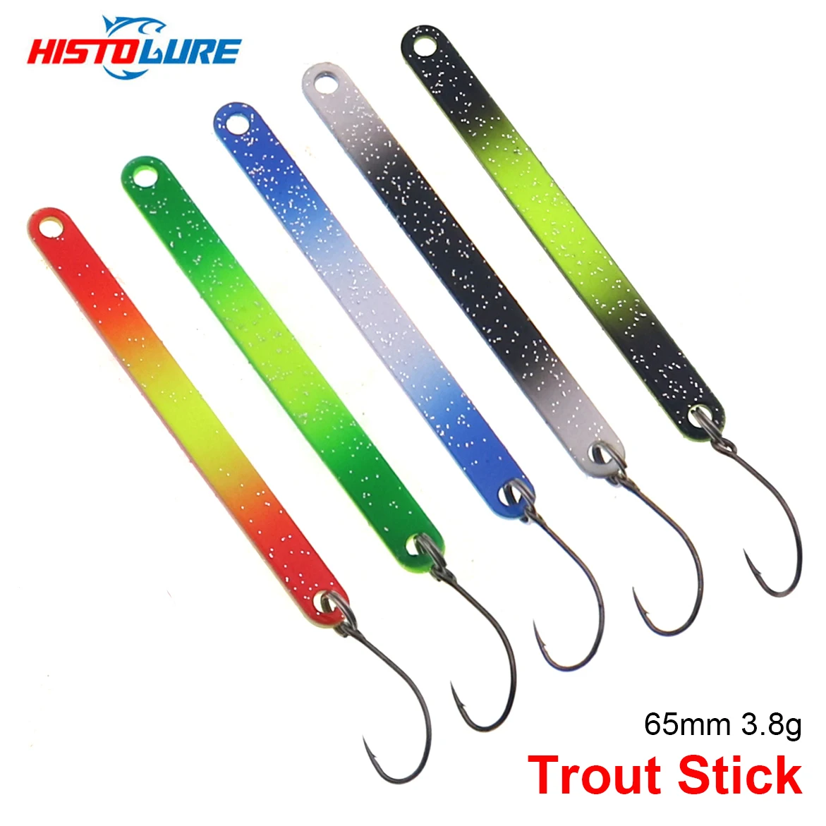 Cuchara de pesca de palo de trucha, 6,5 cm, 3,8g, cebo de cuchara de colores, señuelo de pesca de Metal de cobre para trucha, perca de Lucio