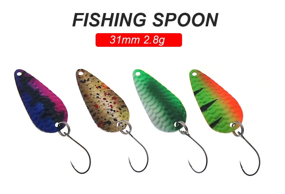 Cuchara de pesca de trucha, anzuelo único giratorio, lure2.8 G, 31mm, Wobbler Artificial, perca, cebos de lubina