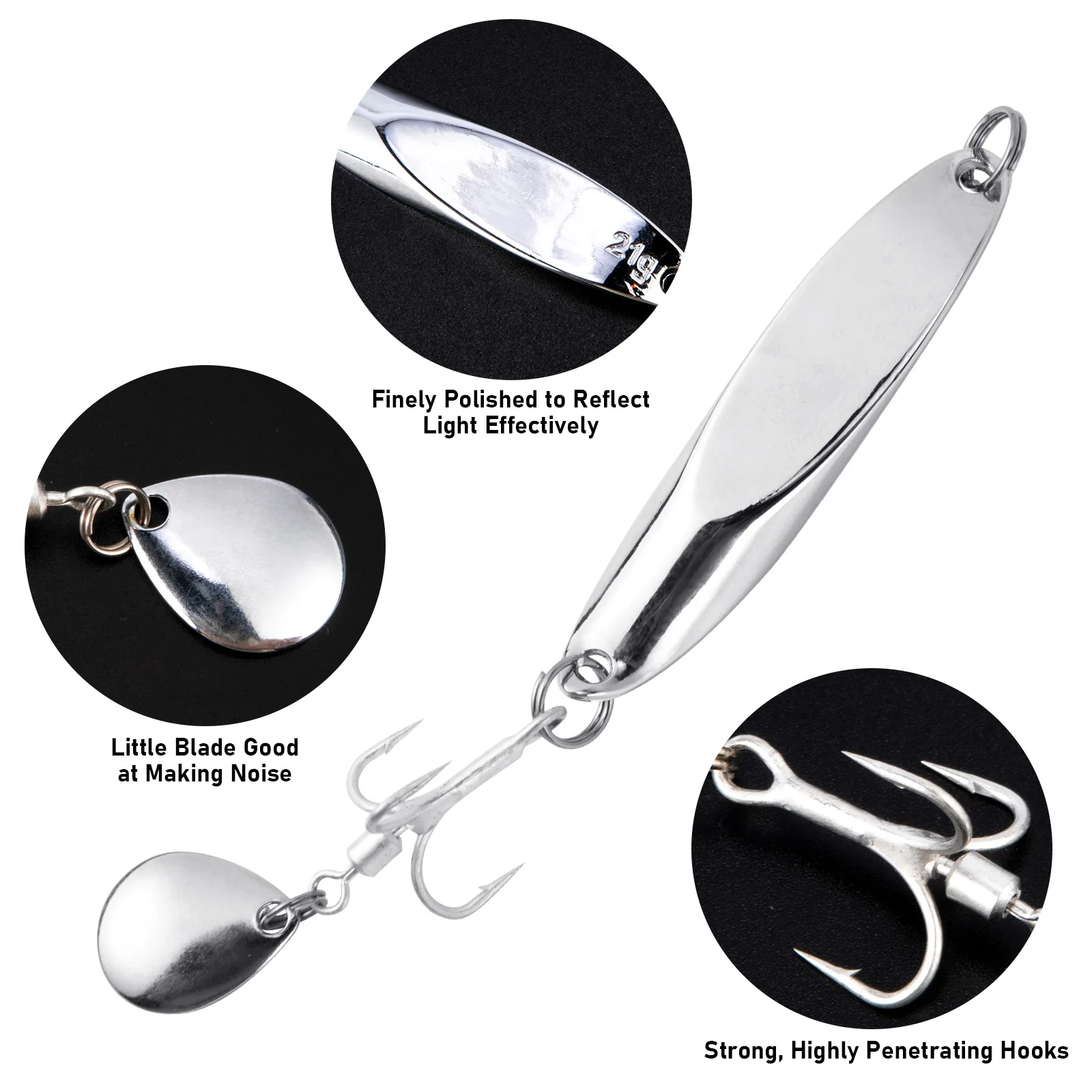 1. La cuchara de metal de pesca Dr.Fish Sliver está finamente pulida para reflejar la luz de manera efectiva, creando un destello deslumbrante que atrae a los peces desde lejos.