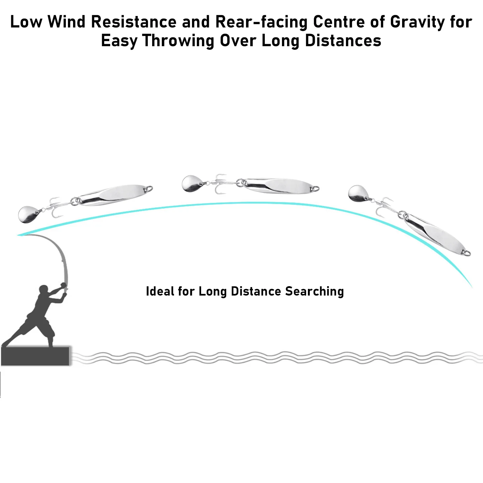 4. Con baja resistencia al viento y un centro de gravedad orientado hacia atrás, nuestra cuchara es fácil de lanzar a largas distancias, lo que la hace perfecta para búsquedas a larga distancia.