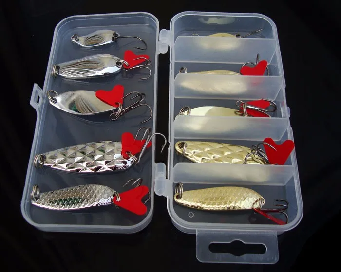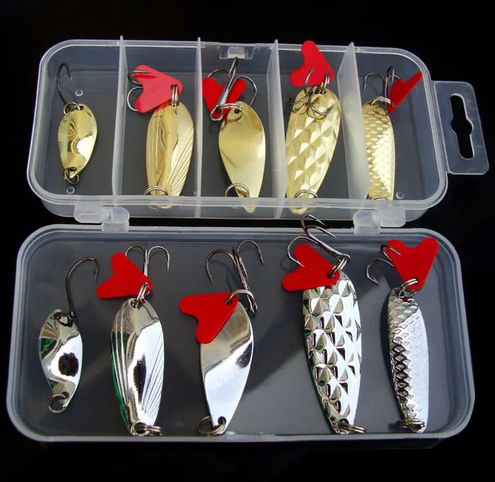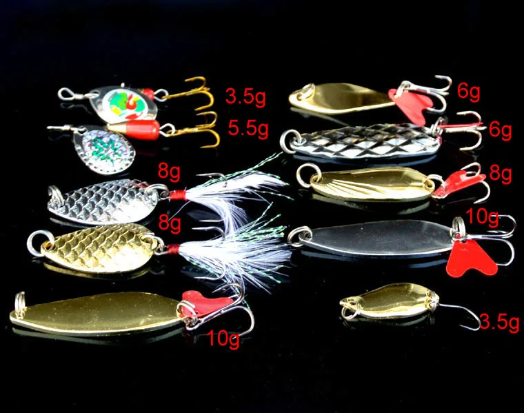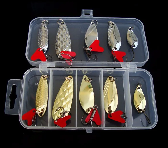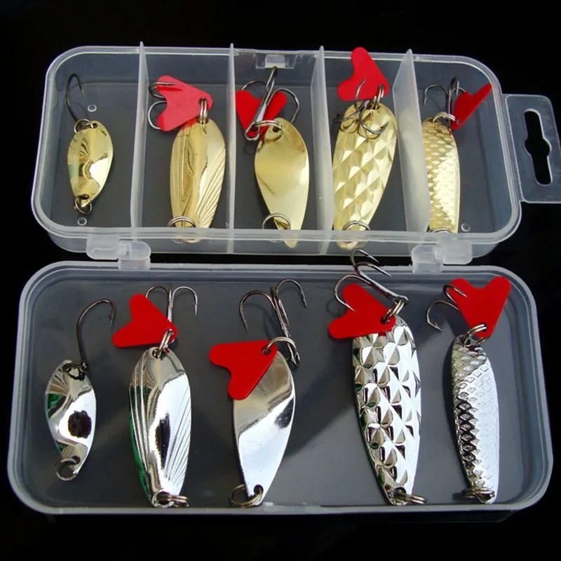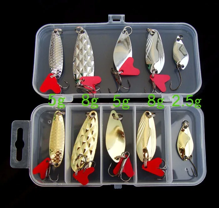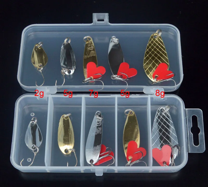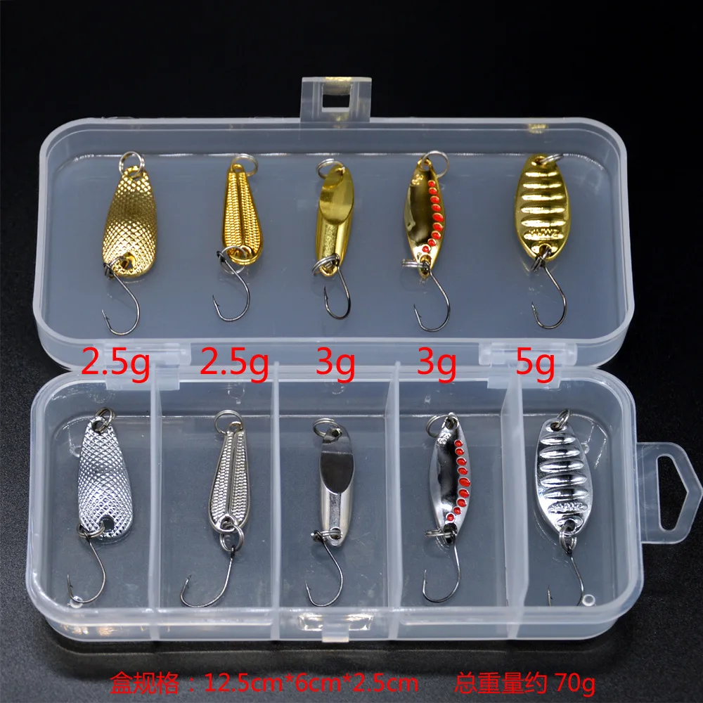 Cucharas Kit de Señuelos de Pesca Accesorios de Señuelos Artificiales Cebo Duro 2,5g/5g/8g Cuchara Juego de 10 Piezas