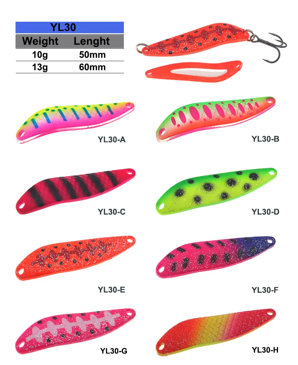 Cucharas de pesca, señuelo de Metal, 10g, 13g, 18g, cuchara de Metal, cebo duro con lentejuelas, Señuelos de pesca para lubina a rayas