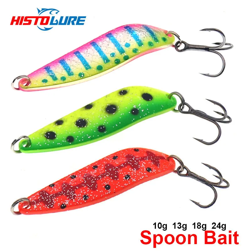 Cucharas de pesca, señuelo de Metal, 10g, 13g, 18g, cuchara de Metal, cebo duro con lentejuelas, Señuelos de pesca para lubina a rayas