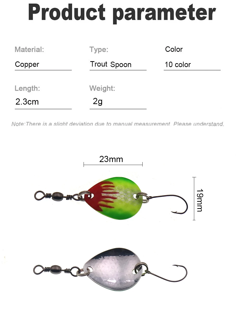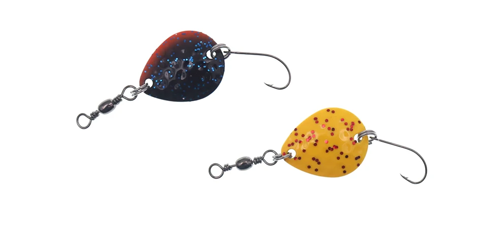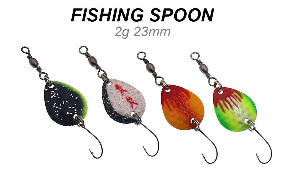 Cucharas de pesca de latón ultraligeras, 2g, 23mm, gancho único, cebo de metal, señuelo de pesca, perca de Lucio
