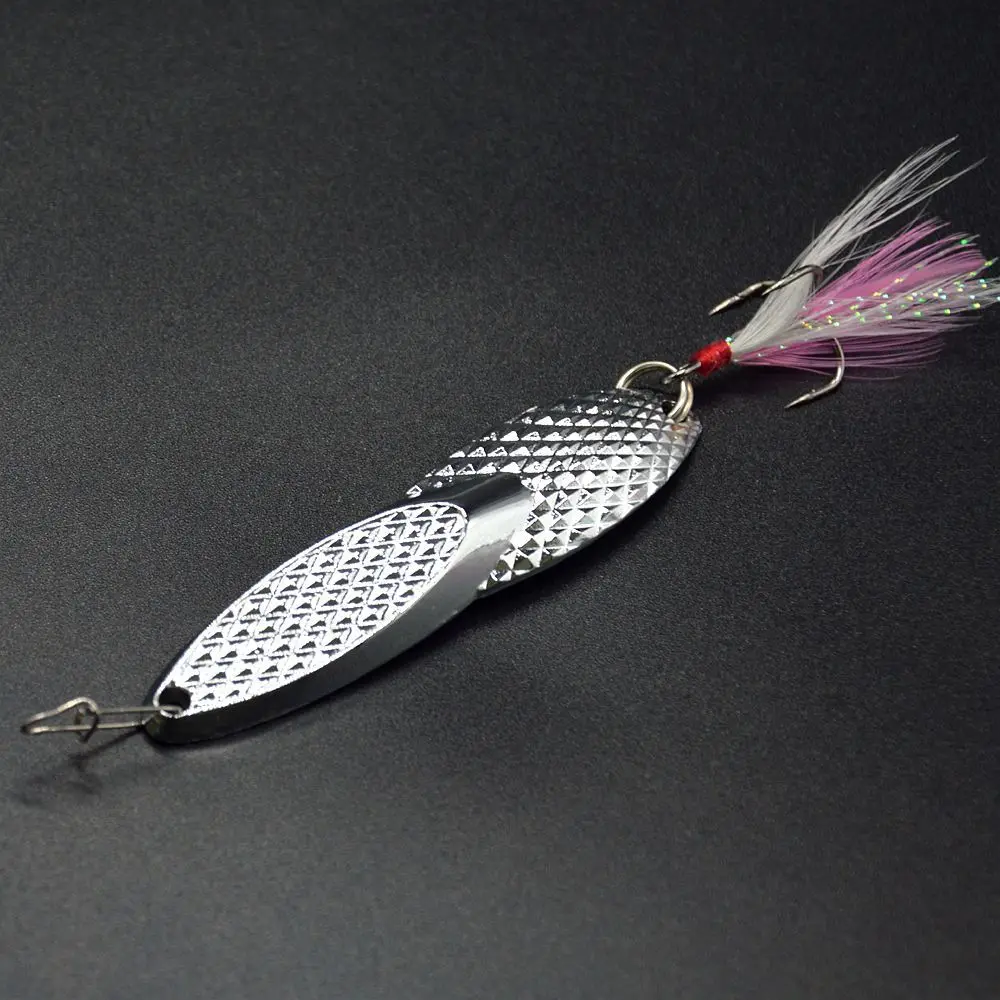 Cucharas de pesca de Metal, señuelo duro de simulación de delfines, búho acuático, Pteris, señuelos artificiales, anzuelos de plumas triples, lote de 5 piezas