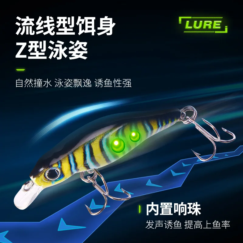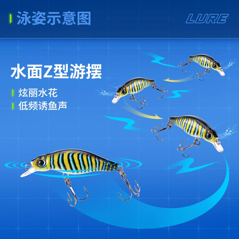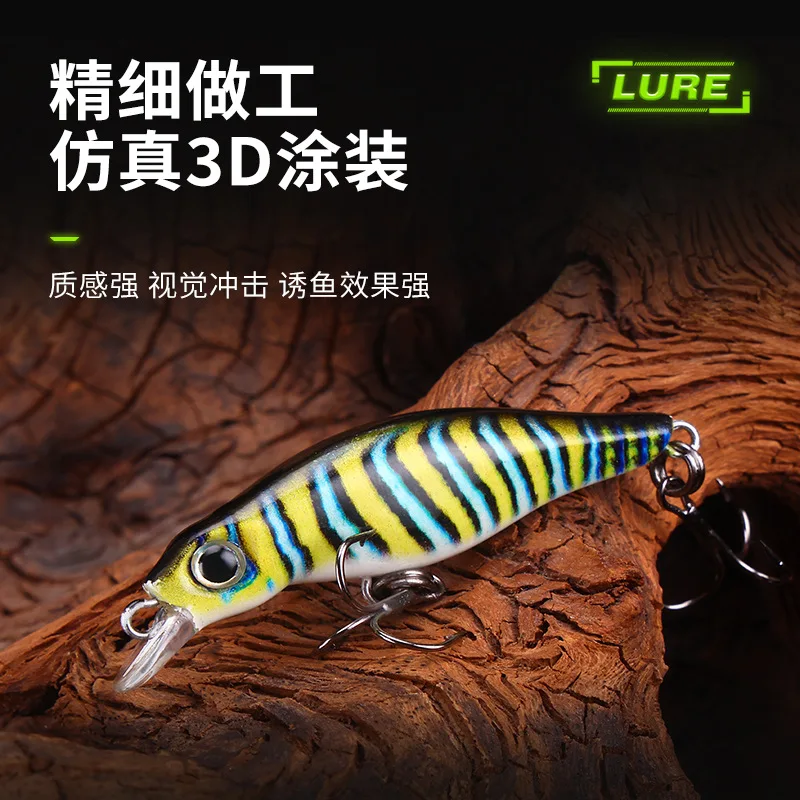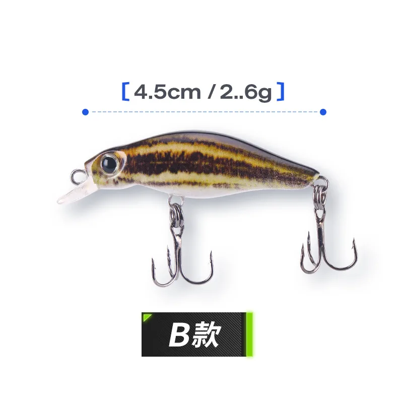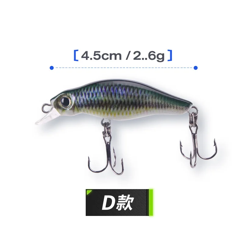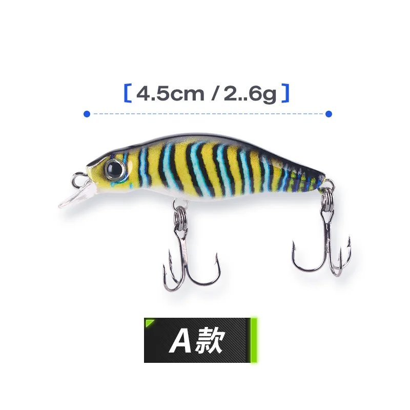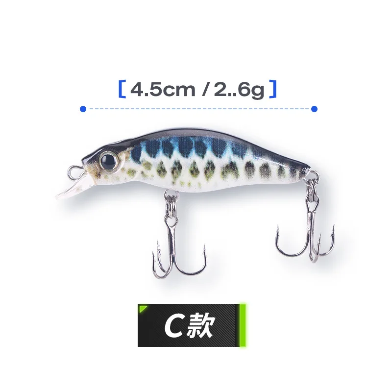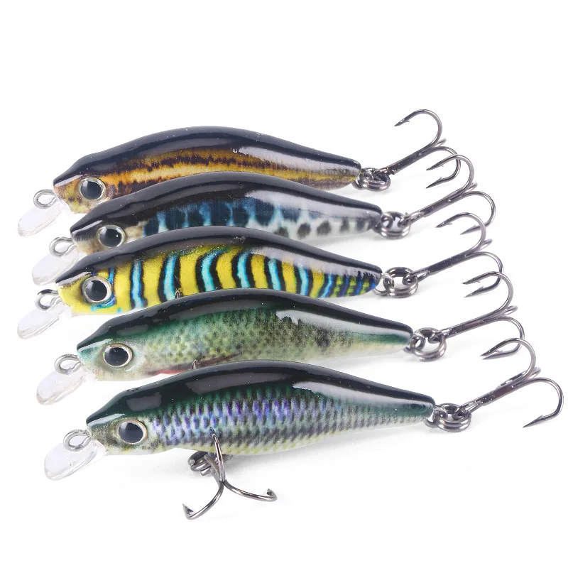 Cucharas de señuelo de pesca con estampado 3D, señuelos artificiales Minnow 4,5 cm 2,6g, cebo para trucha, anzuelos triples, lote de 5 piezas en oferta