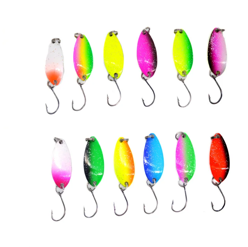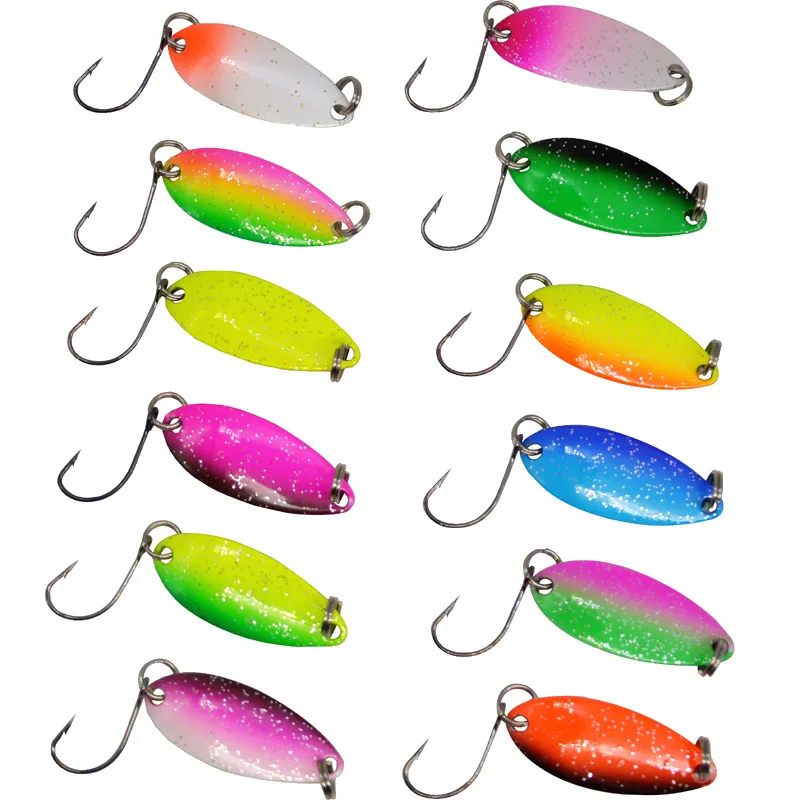 Cucharas de señuelo de pesca, pintura de doble cara, señuelos de cuchara Artificial de colores, lote de cebo duro de trucha de 3g, 12 piezas, venta