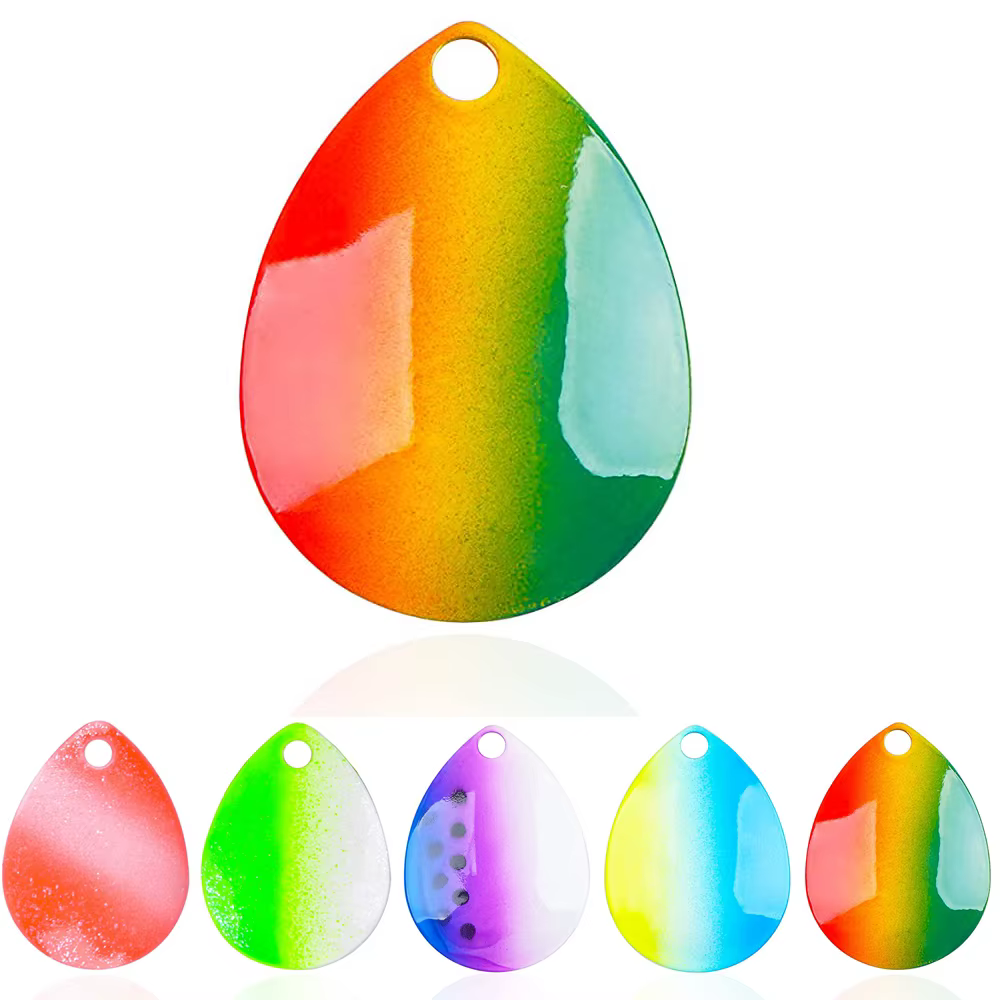 【5 COLORES BRILLANTES】 Las cuchillas giratorias vienen en una variedad de acabados holográficos pintados y la superficie lisa es brillante y reflectante.Colores y patrones especialmente seleccionados para aumentar la atracción para peces grandes.
