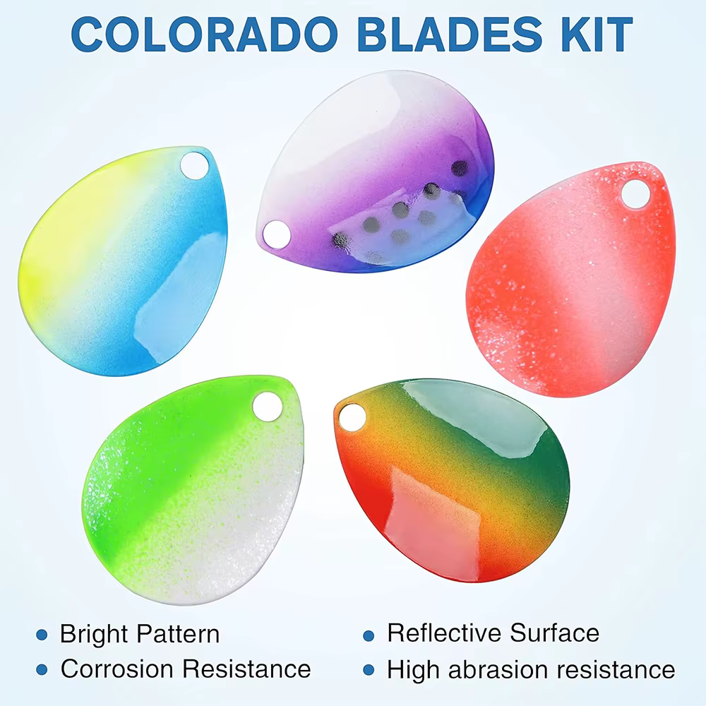 【HAGA TUS PROPAS SEÑAS】 El kit de cuchillas giratorias de pesca es una parte necesaria para hacer su propio spinner, aparejos walleye o plantillas.También es una excelente manera de actualizar los señuelos antiguos.El kit de fabricación de señuelos con cuchillas colorado dará vida a sus señuelos y hará que la pesca sea más divertida.