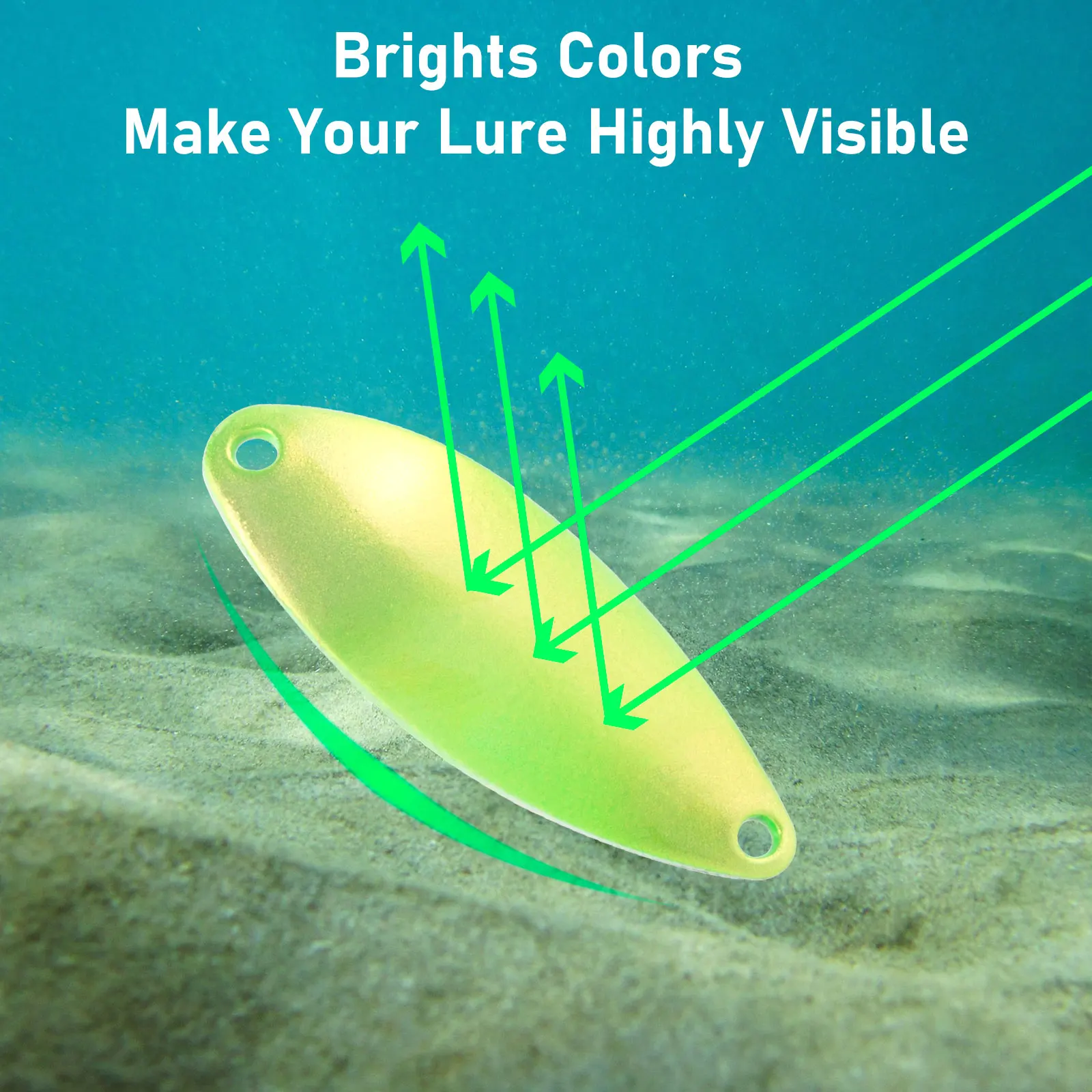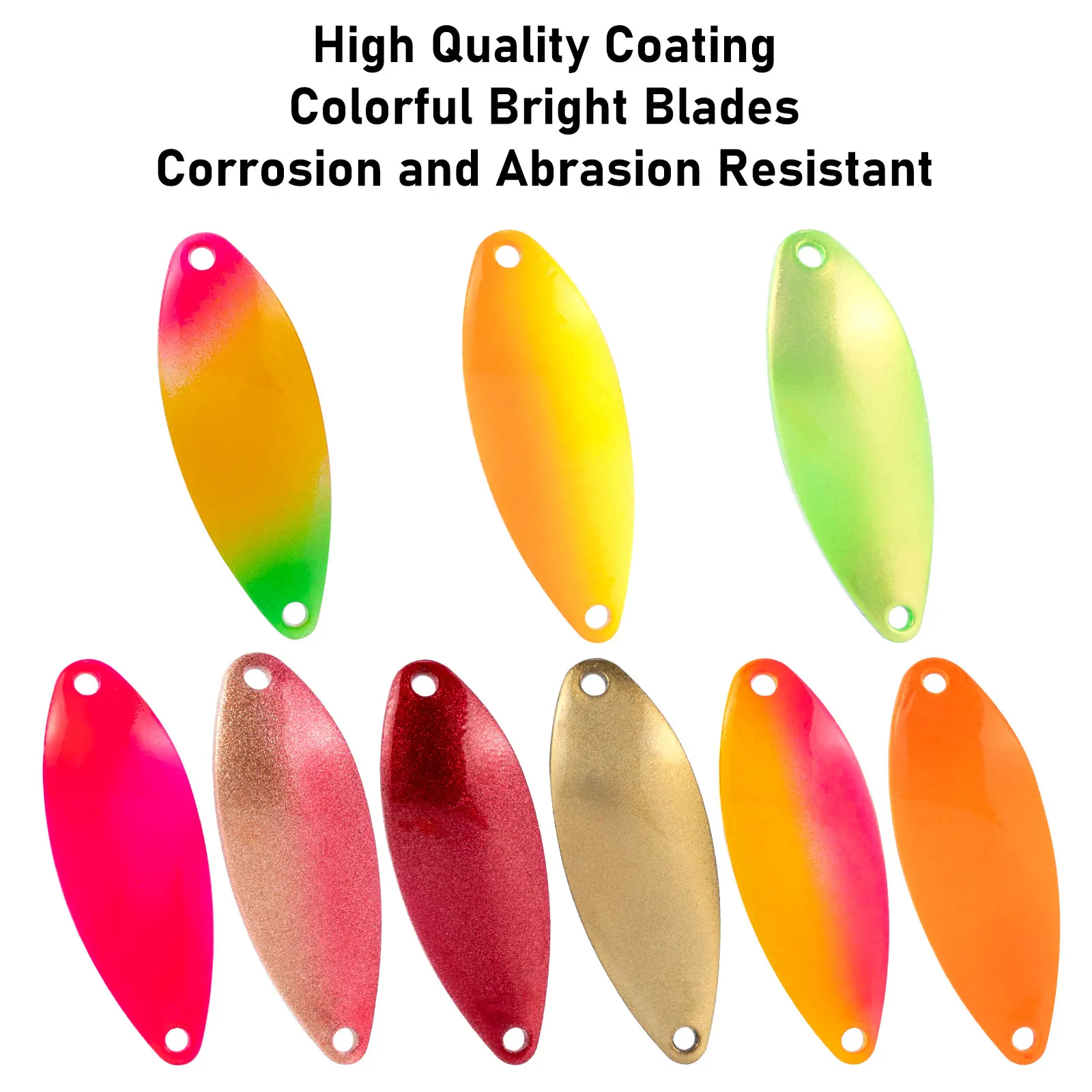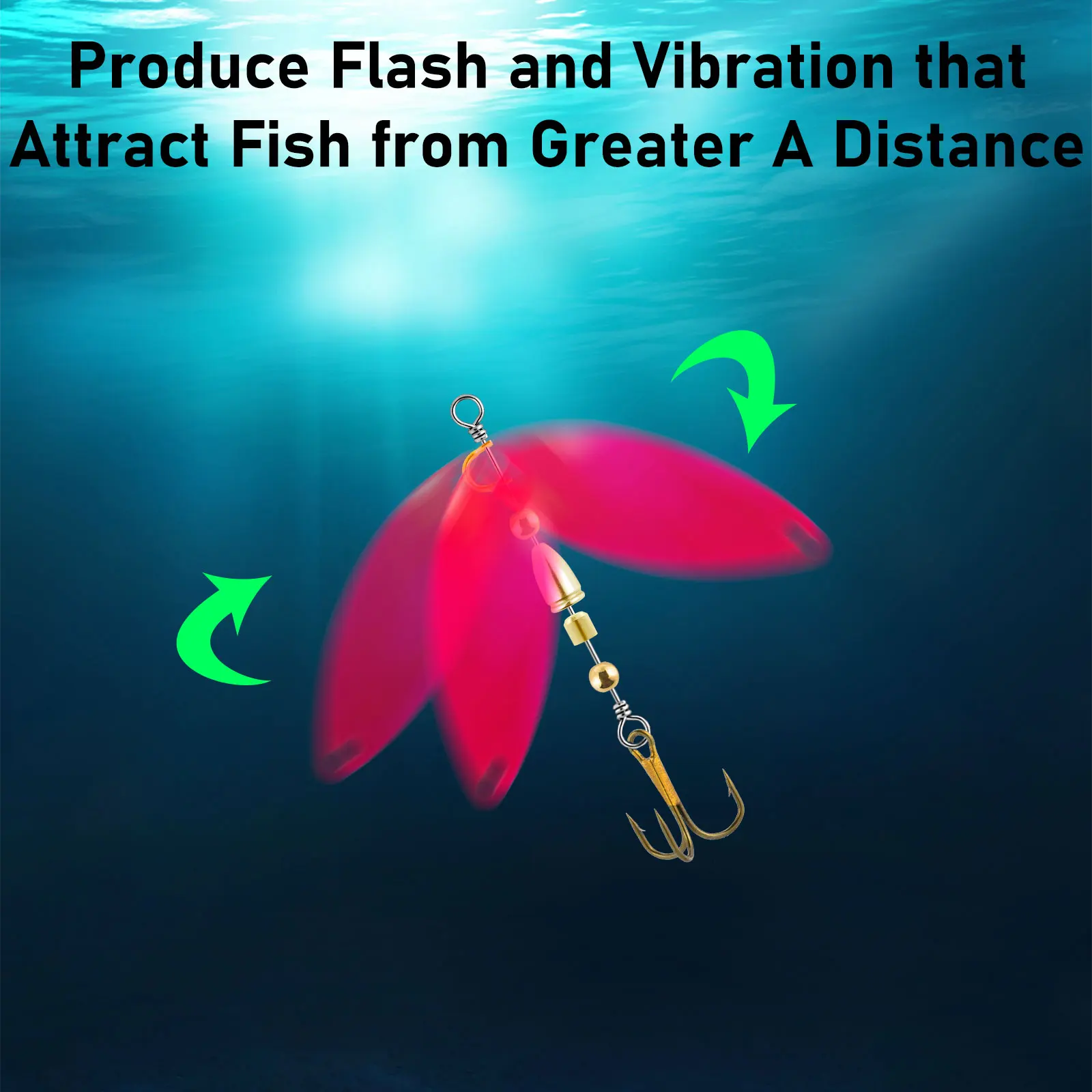 Diseño versátil: las cuchillas giratorias de pesca vienen en múltiples colores brillantes. Son muy brillantes que permiten que su señuelo sea visto desde mucha más distancia.