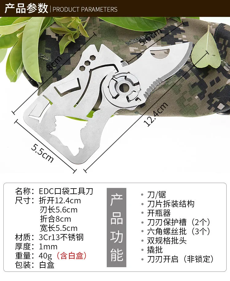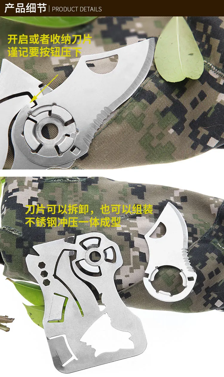 1. ¡La hoja de desmontaje rápido Fly-Off puede cumplir con el aeropuerto y otras ocasiones especiales para verificar! Cuchillos/sierras, llaves de palanca, destornilladores, abrebotellas, etc. son sus herramientas de mano diarias.