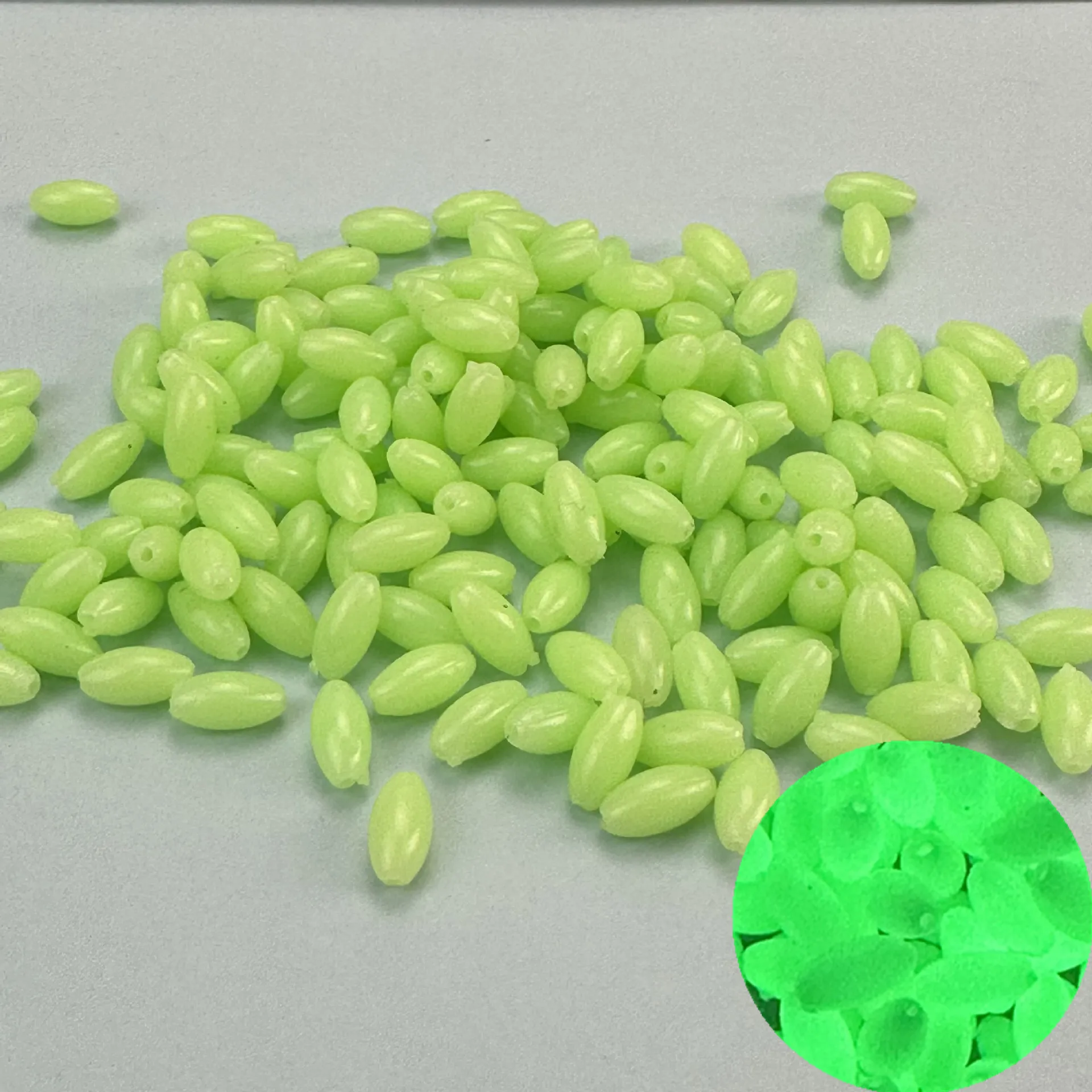 Cuentas de brillo nocturno de piezas, columna larga de oliva, llamativa, agrandada, accesorios de flotador de peces, equipo de Pesca, 100