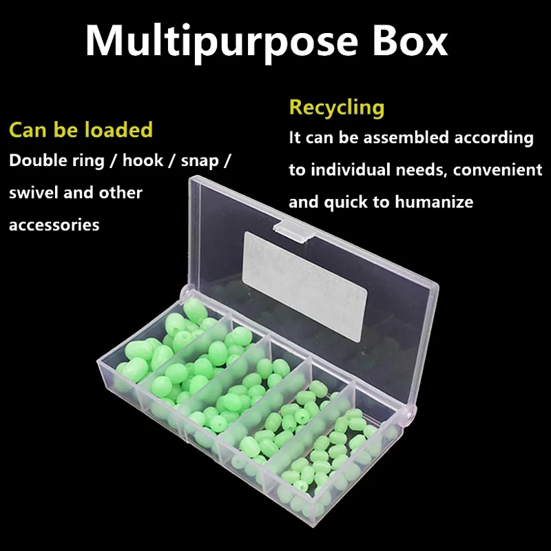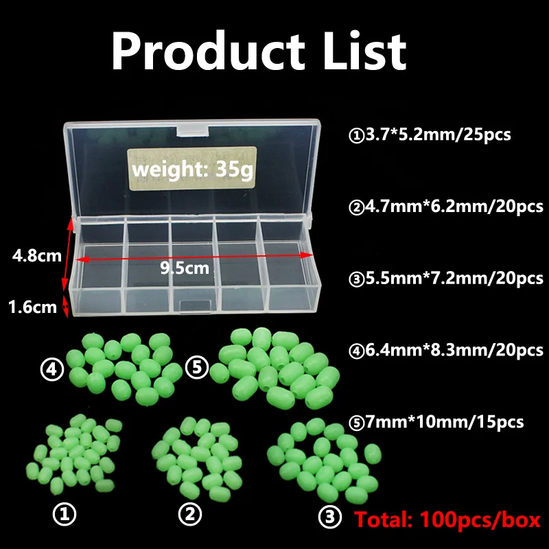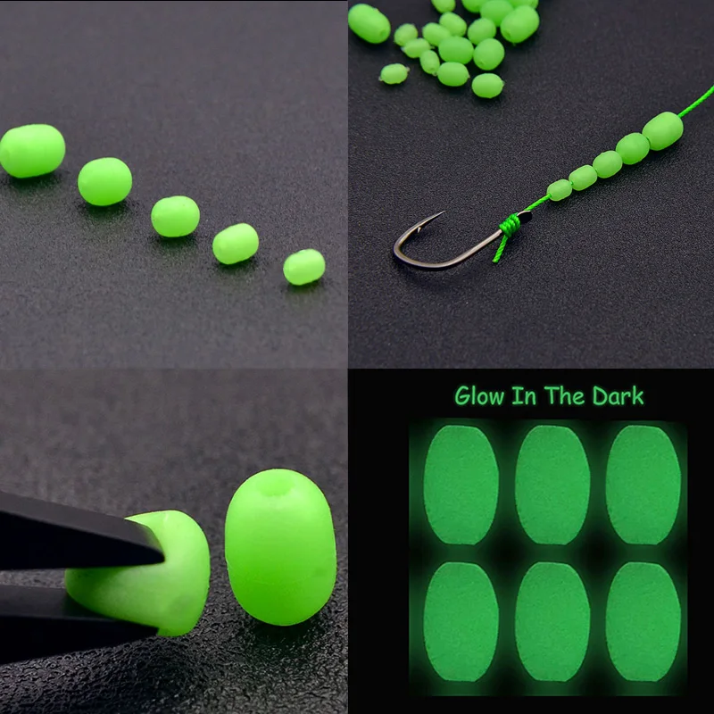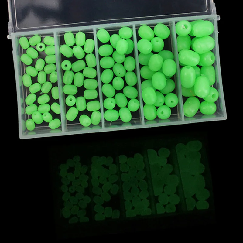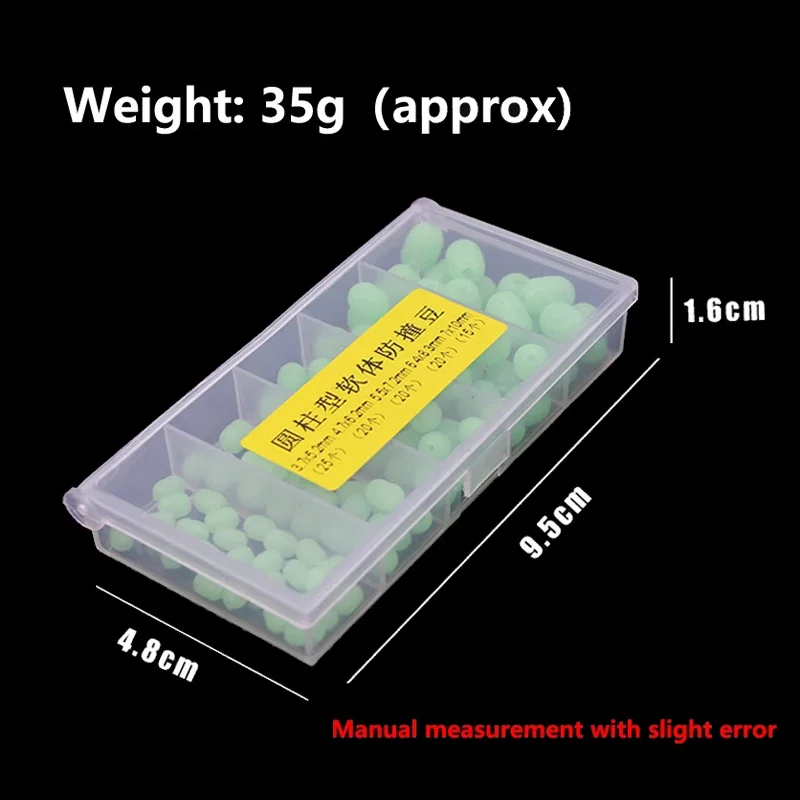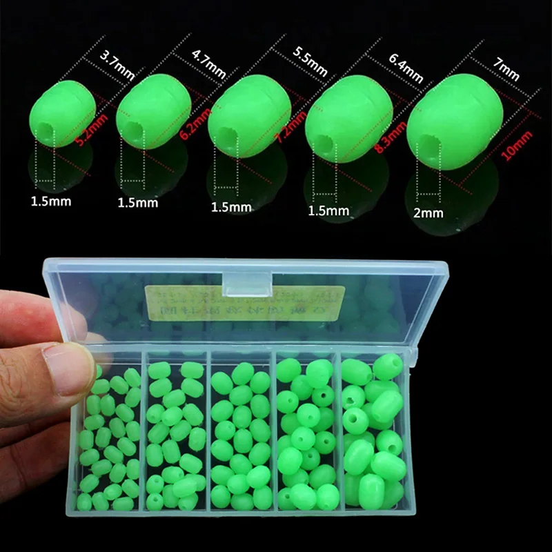 100 unids/caja 5 tamaños pesca en el mar cilíndrico luminoso verde suave cuentas de goma anticolisión traje de frijol para Sabiki Snapper señuelo Rig