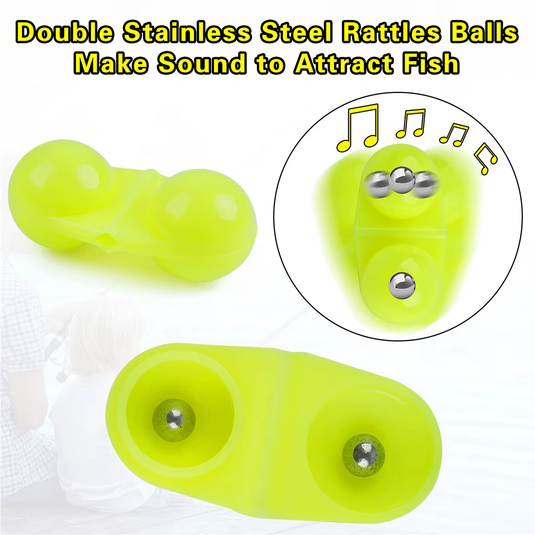2. Los sonajeros de pesca en línea adoptan una estructura de doble campana, mejorando eficazmente el ruido y la vibración, atrayendo a los peces depredadores.