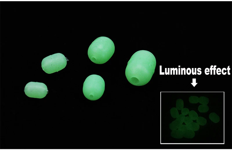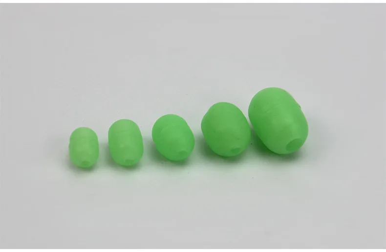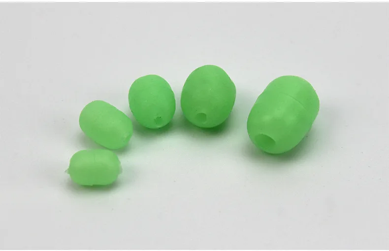 Cuentas luminosas de cilindro de goma suave, abalorios luminosos de Lumo, accesorios de pesca de goma suave con gancho jigging, color verde, lote de 100 unidades