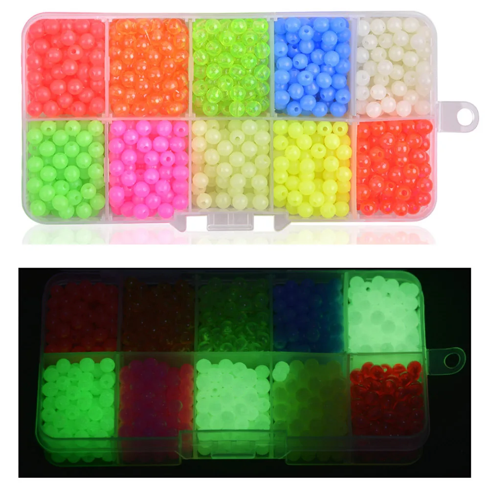 1000 unids/caja cuentas de pesca luminosas accesorios de señuelo Carolina Rigs impuestos aparejos cuentas de pesca brillantes DIY Kit aparejos de pesca de lubina