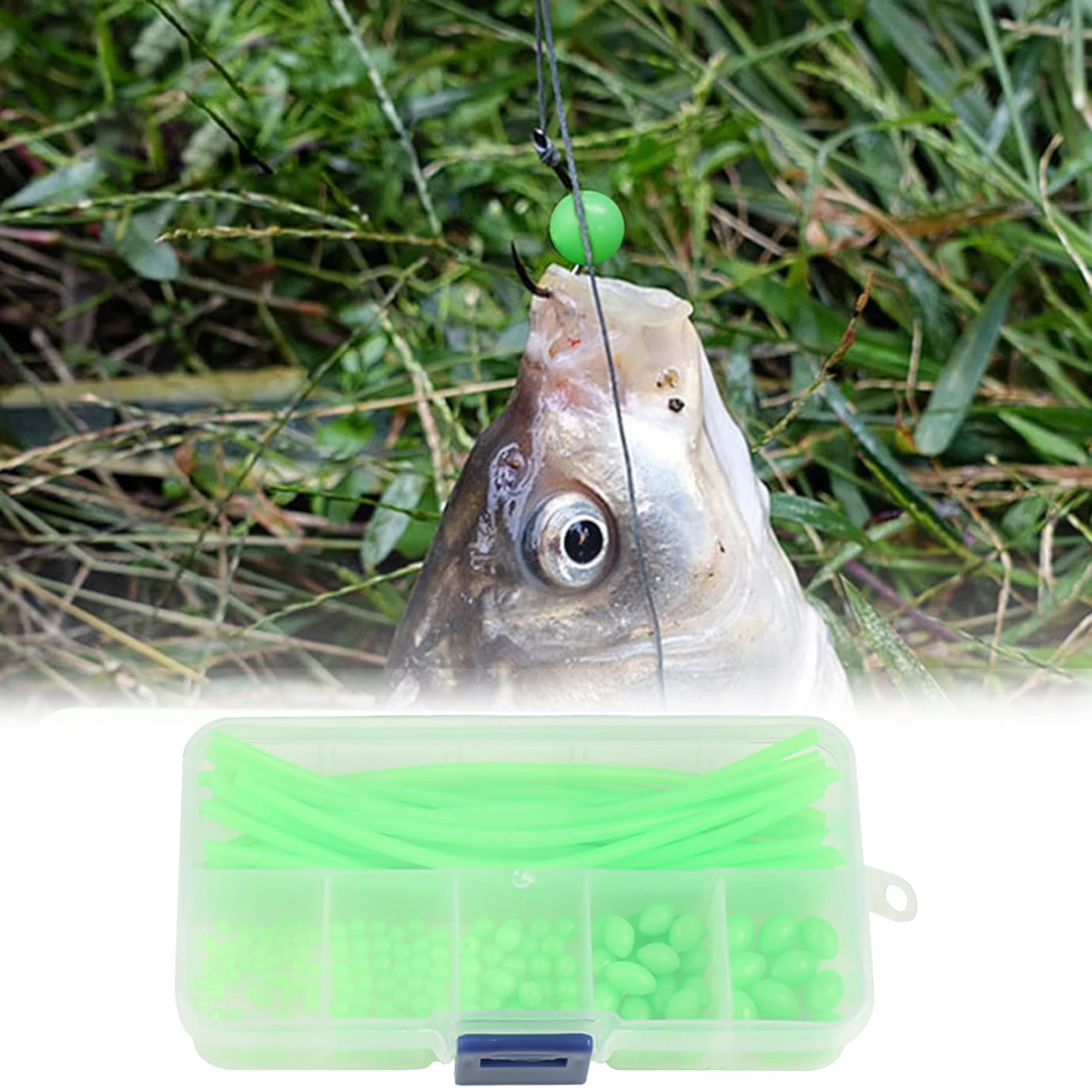 Atracción eficaz de los peces: las únicas cuentas luminosas verdes de forma ovalada están diseñadas para imitar el cebo natural, mejorando su experiencia de pesca y aumentando sus posibilidades de lograr una captura exitosa.