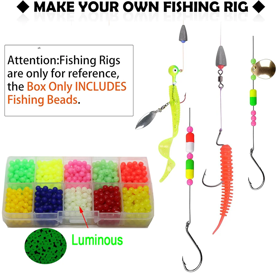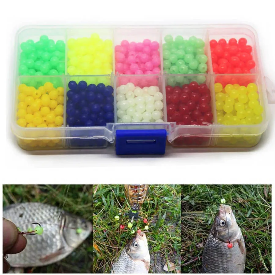 Cuentas de pesca que brillan, agua salada, agua dulce, 1000, cuentas de plástico para peces, cuentas de huevo redondas luminosas, surtido de aparejos de pesca, herramientas para líderes de aparejos
