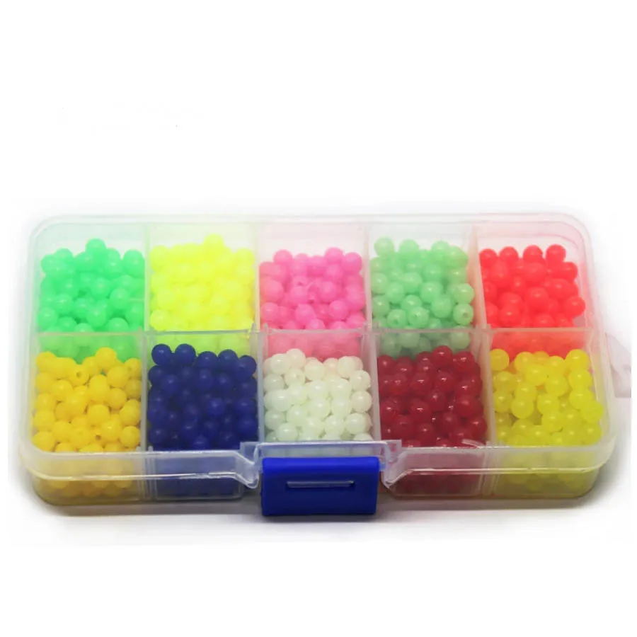 Cuentas de pesca que brillan, agua salada, agua dulce, 1000, cuentas de plástico para peces, cuentas de huevo redondas luminosas, surtido de aparejos de pesca, herramientas para líderes de aparejos