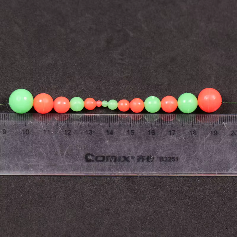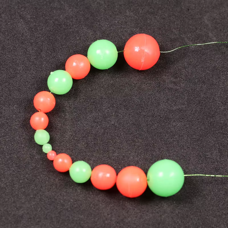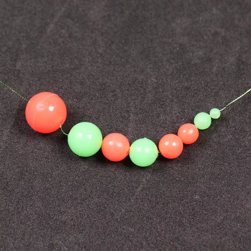 Cuentas de pesca brillantes, redondas, suaves, verdes y rojas