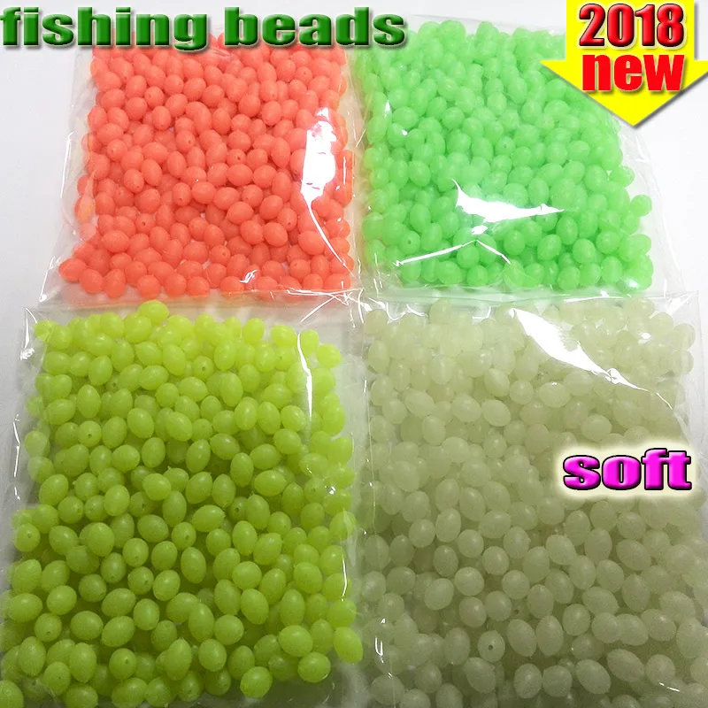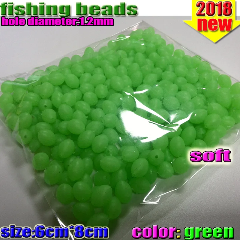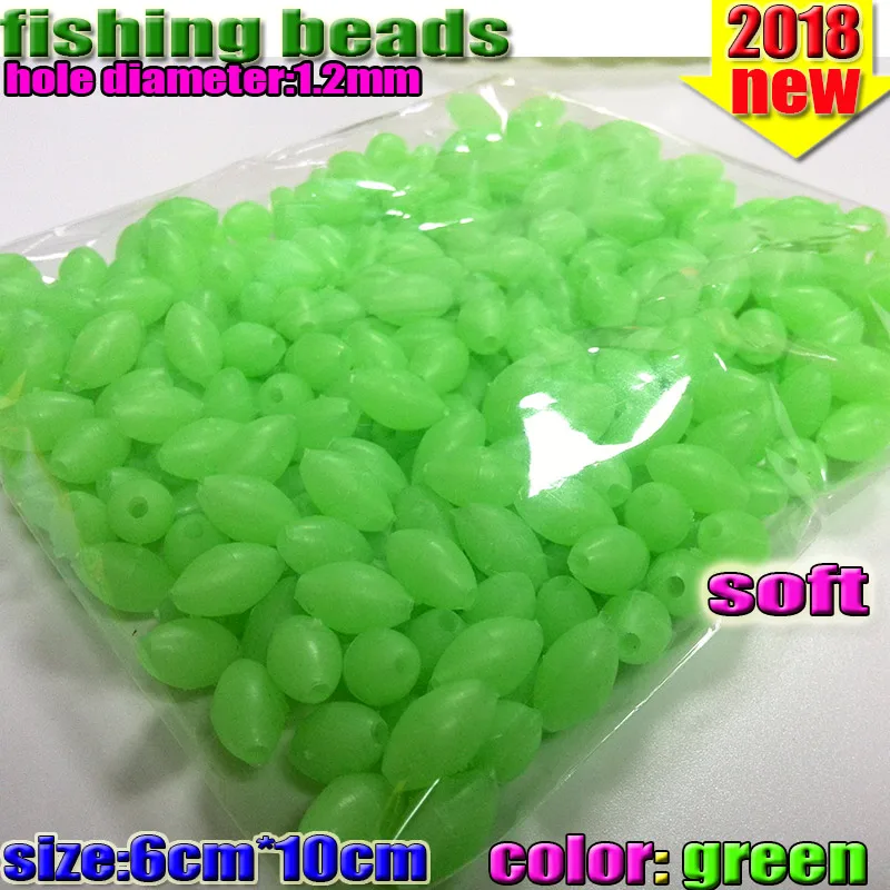 Cuentas de pesca ovaladas, señuelo luminoso de plástico que brilla en la oscuridad, color rojo, amarillo, blanco y verde, MM x MM, 300 unidades por lote