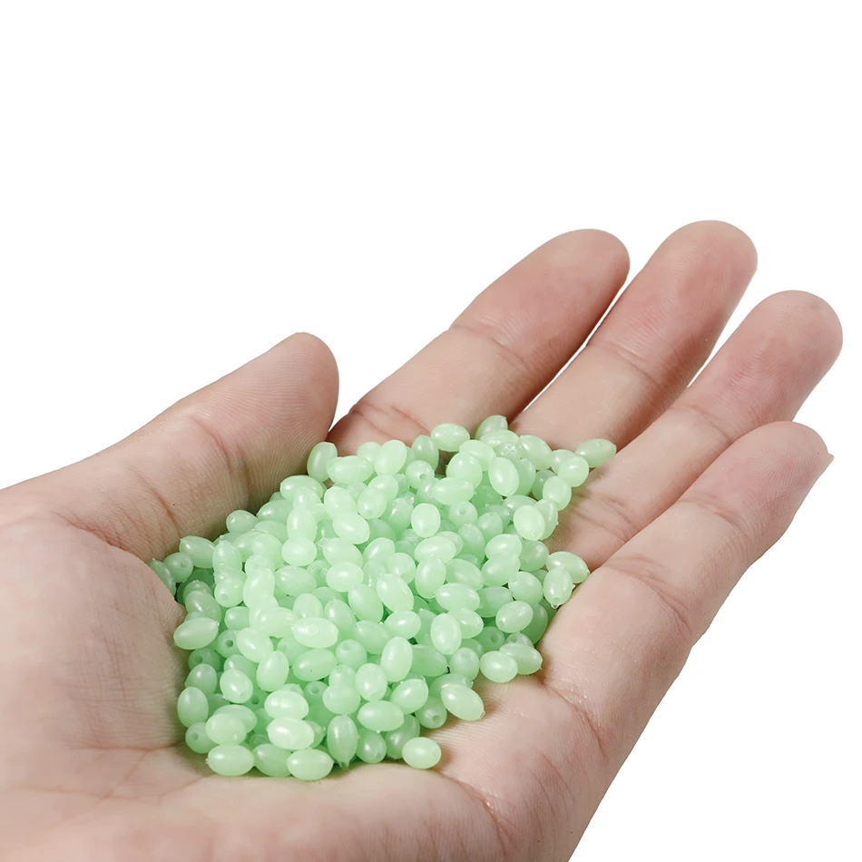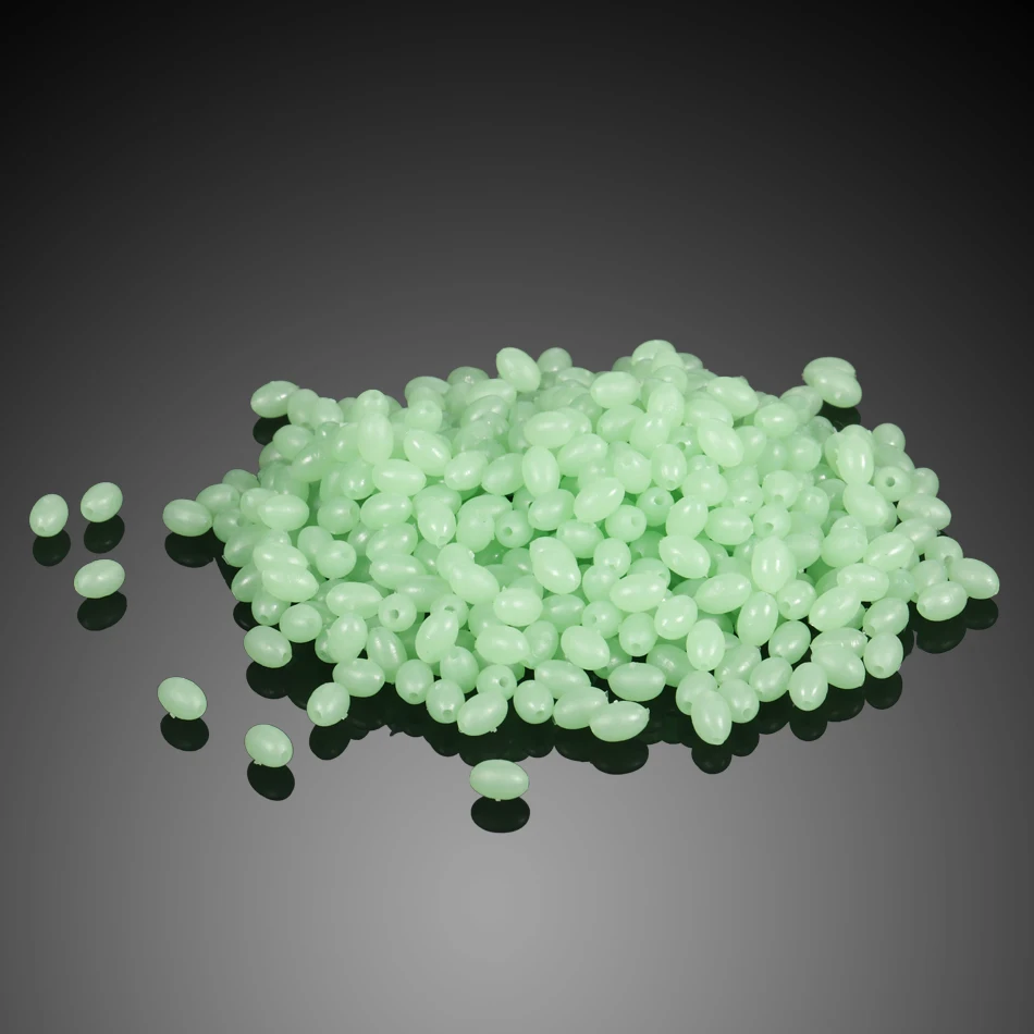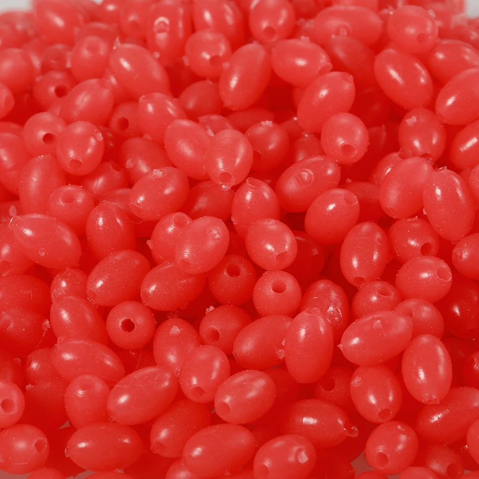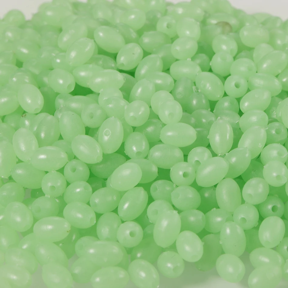 Cuentas de pesca brillantes ovaladas duras/suaves, verdes, rojas y naturales