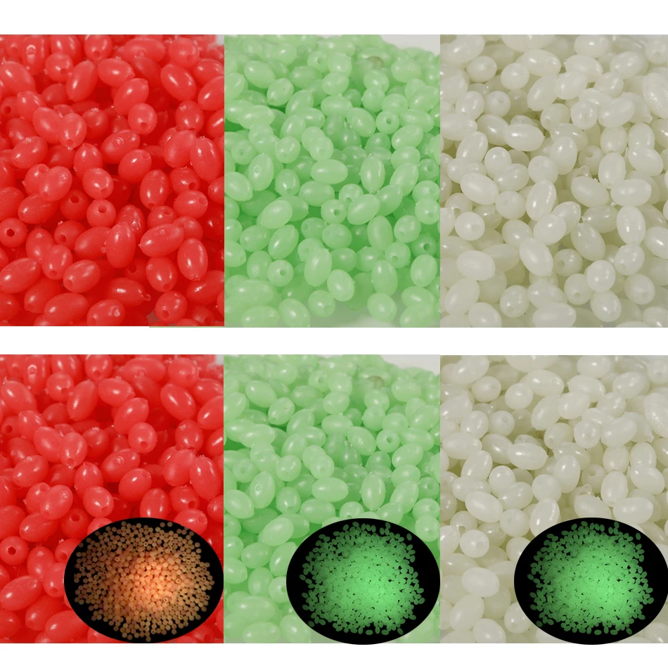 Cuentas de pesca brillantes ovaladas duras/suaves, verdes, rojas y naturales