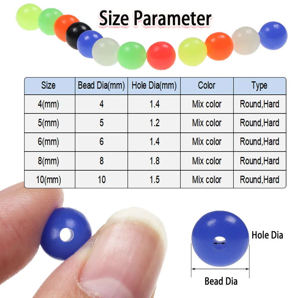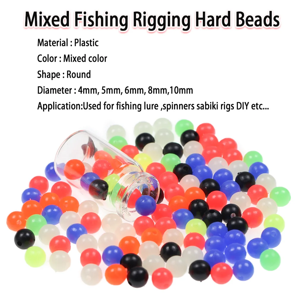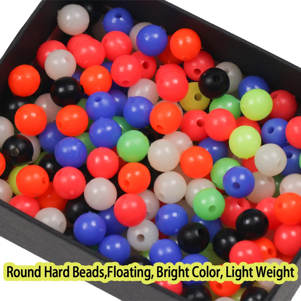 Rieles de pesca de colores mixtos de 200 piezas, cuentas de pesca redondas de plástico duro para anzuelo triple, aparejos de Pesca, Señuelos de Pesca