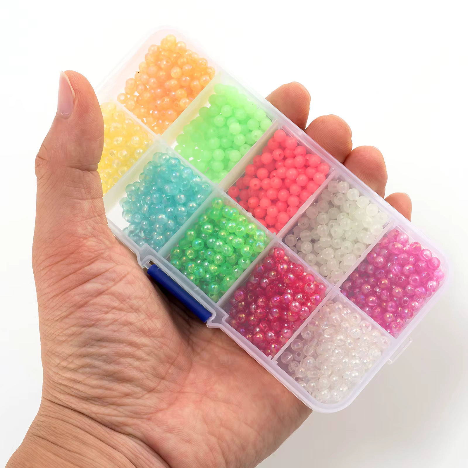 Diez colores: naranja, verde limón, Morado, Amarillo, Azul, chartreuse, rojo, claro, verde (resplandor), Rosa (resplandor).Total 1500 piezas, 150 piezas por color.