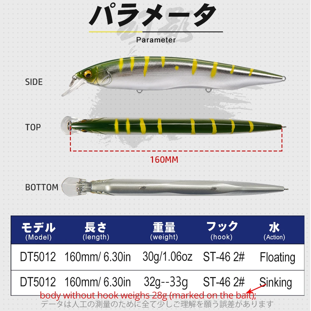 Hundimiento de 160mm: el cuerpo sin anzuelo pesa 28G (marcado en el cebo); el peso total es de 32G-33g (la medición manual tendrá un error de 1-2g)