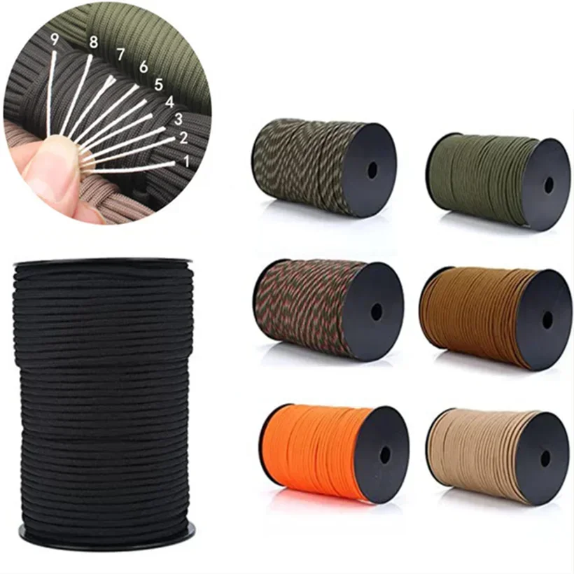 Cuerda de paracaídas Paracord de 9 núcleos y 4mm, cuerda de seguridad de rescate de emergencia para exteriores, cuerda multifuncional para escalar y acampar, tendedero para senderismo