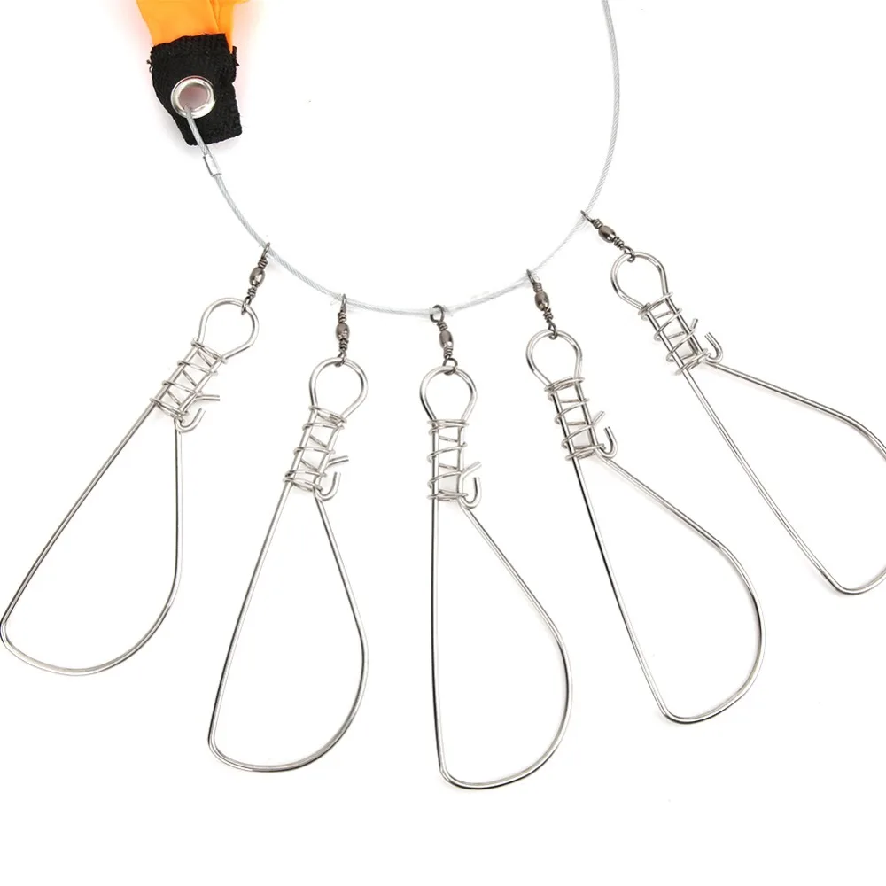 Bright Visibility: Available in a vibrant orange color, the stringer is easily visible in various lighting conditions, enhancing safety and accessibility. Ideal for anglers who need to keep track of their gear, especially when fishing in challenging environments. Item type: Stainless Steel Fish Stringer
