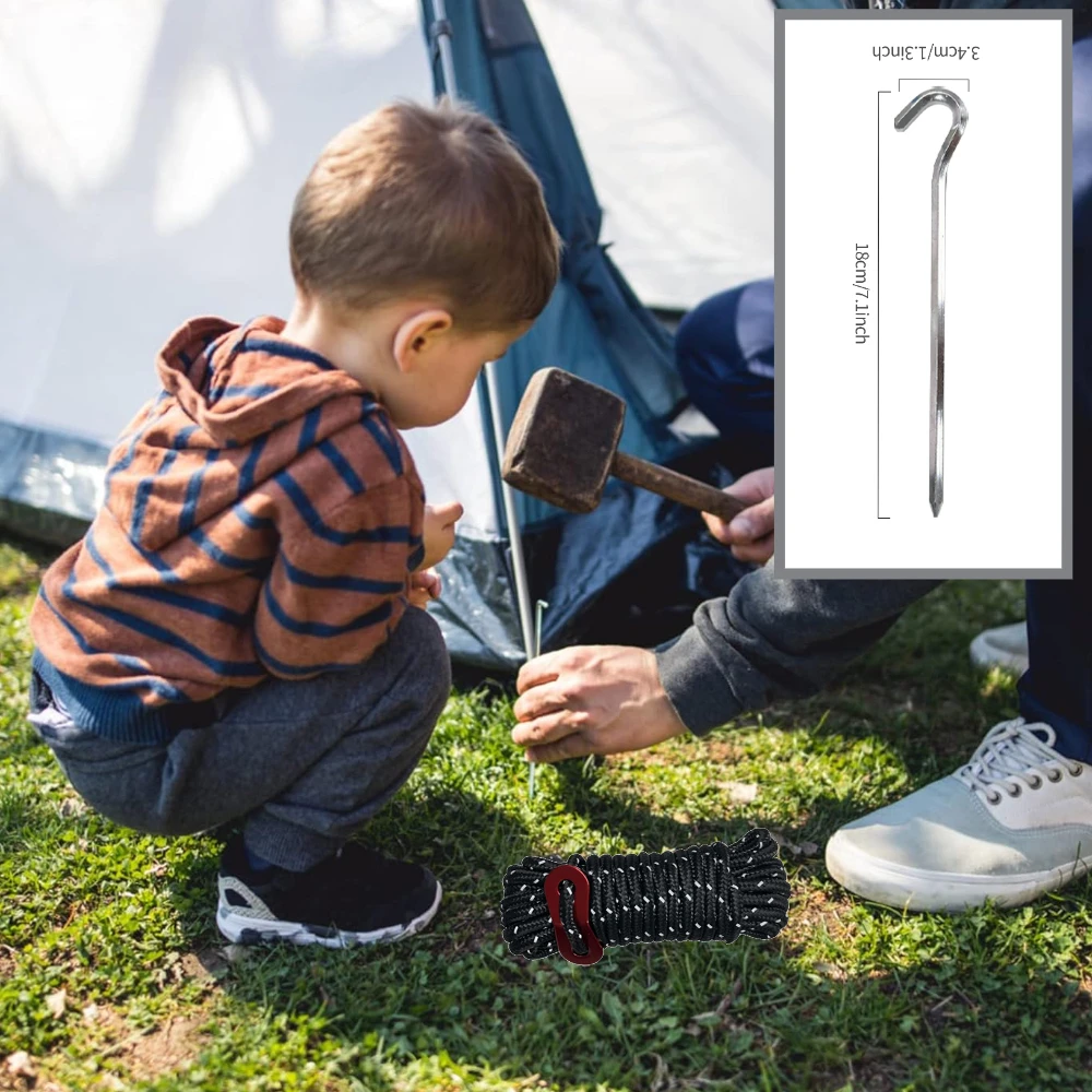 Cuerda a prueba de viento de 4mm y clavos para el suelo, cuerdas para tienda de campaña para exteriores, cuerda para acampar para tienda de senderismo, lona, dosel, accesorios, 2/4 Uds.