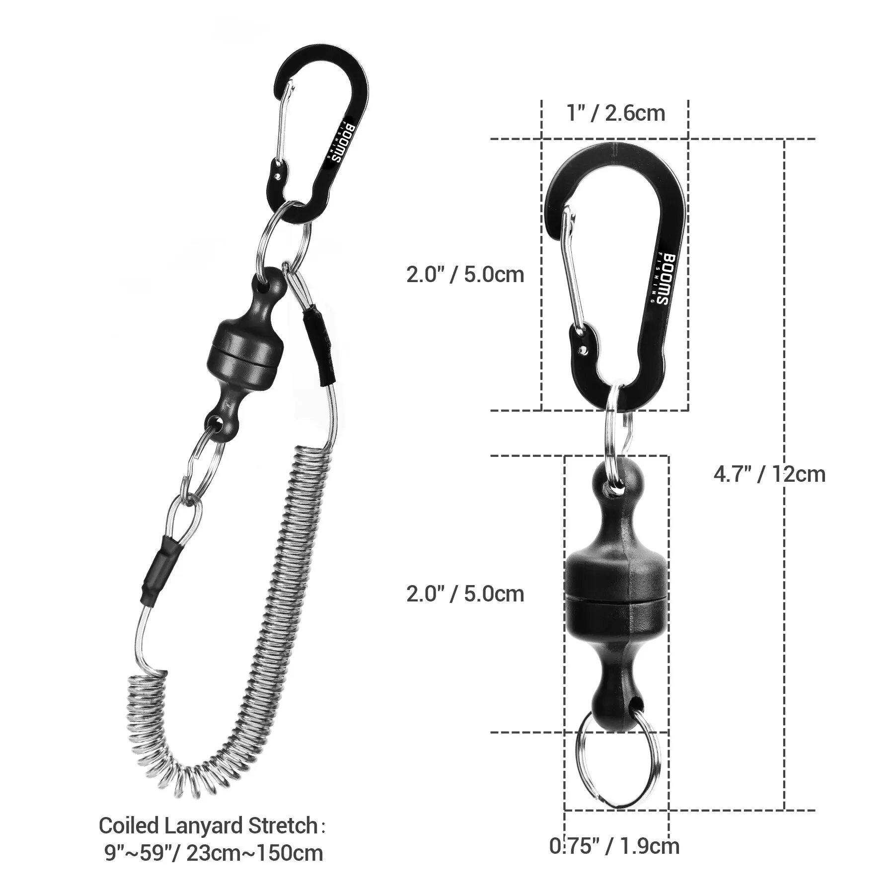 • Cordón de cable de cordón en espiral de liberación magnética :La Función de liberación magnética garantiza que el pez no se salga de su agarre, lo que facilita la captura y la liberación.