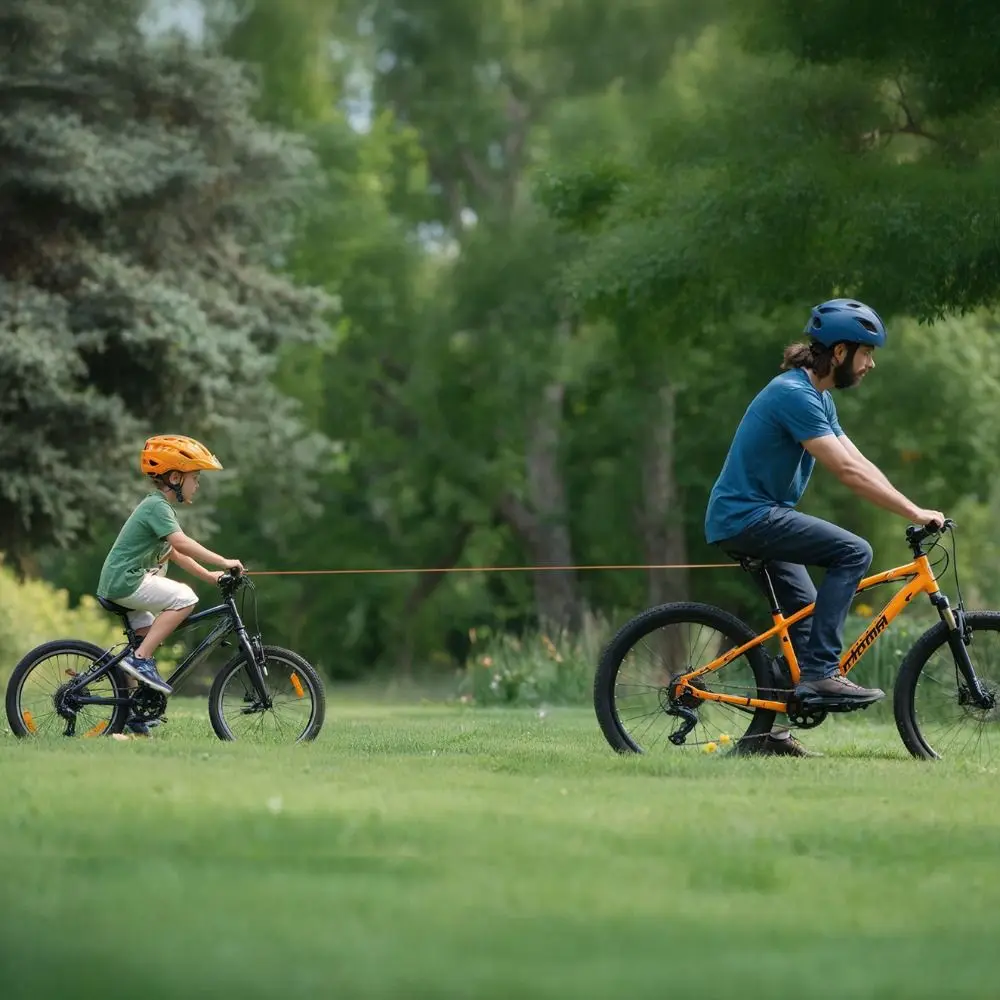 1.Easy Towing: This bicycle tow rope allows you to effortlessly connect your child's bike to the back of yours, making it convenient for towing during mountain rides and ensuring your child enjoys the cycling experience.