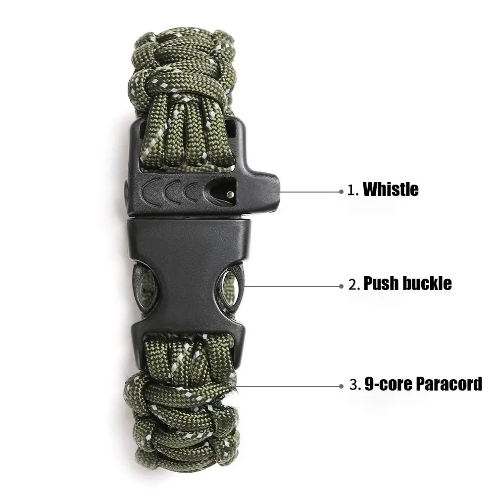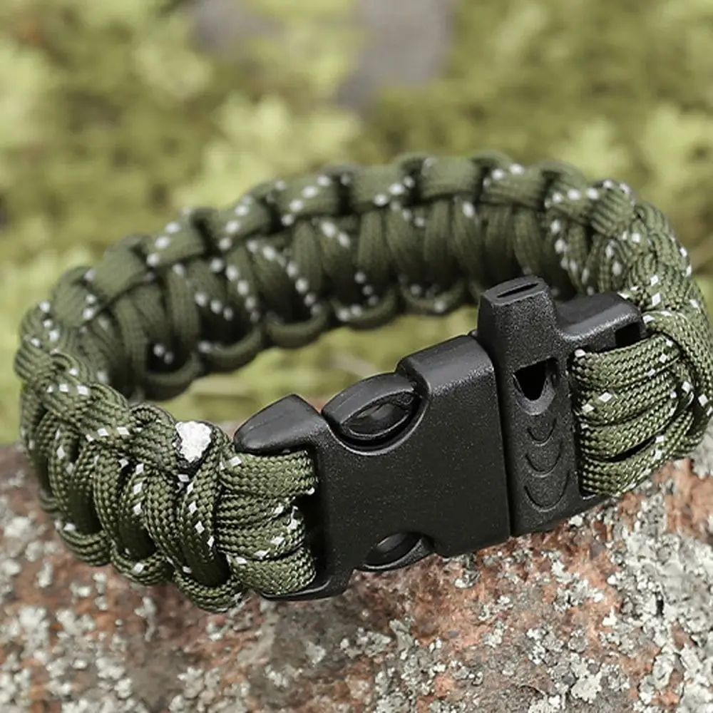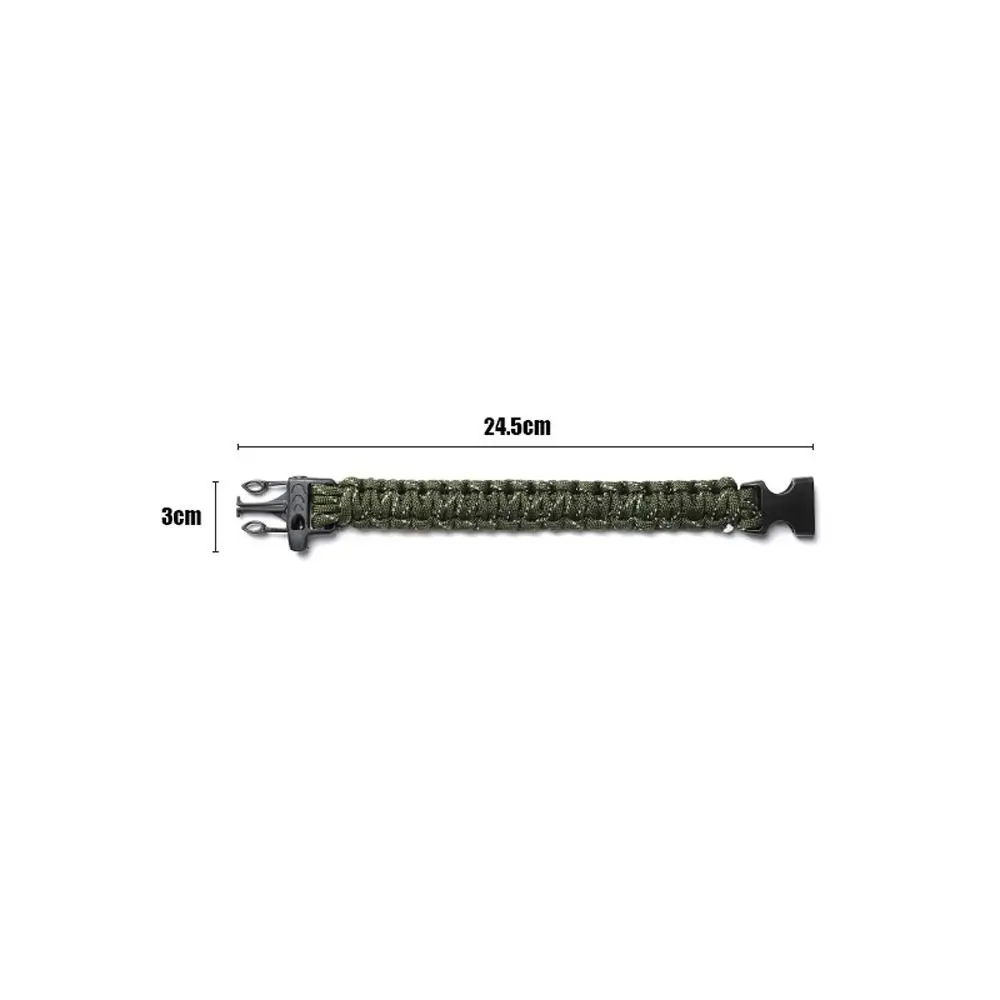 Longitud: 24,5 cm Ancho de la pulsera: 2,5 cm Especificaciones de la cuerda del paraguas: diámetro 4mm (9 núcleos) Color: negro reflectante, verde militar reflectante, naranja reflectante, caqui reflectante, rojo reflectante, azul reflectante, gris reflectante. Cantidad: 1 unidad. El paquete incluye: 1 pulsera de supervivencia. Característica: 1. Campanas de supervivencia Las campanas utilizadas en situaciones de emergencia pueden detener el sangrado, hacer trampas, atar temporalmente tiendas de campaña, usar juegos de equipos para evitar pérdidas, etc., ¡y hacer un rescate de emergencia! El diámetro de la cuerda del paracaídas es de 4mm, y la tensión de la cuerda es de aproximadamente 240 kg. La pulsera monocromática mide aproximadamente 3 metros de largo cuando se abre el paraguas. El material utilizado es una cuerda de paracaídas especial, que es la misma que la cuerda utilizada para barcos, y tiene las características de resistencia a la corrosión y Antienvejecimiento. 2. Conveniencia y moda, las cosas pequeñas son útiles, pueden ser útiles en momentos críticos, un elemento imprescindible para los jugadores al aire libre. Cuando necesite una cuerda, la pulsera de supervivencia se puede quitar rápidamente para convertirse en un salvavidas que soporta completamente el peso. La emergencia puede detener el sangrado, hacer trampas, atar tiendas de campaña temporales, cortar cuerdas, usar equipos para evitar pérdidas, etc., ¡se puede usar para ayuda de emergencia! El cierre de la pulsera se puede utilizar como un silbato de emergencia. 3. El material utilizado en la pulsera de supervivencia es una cuerda de paraguas especial, que es la misma que la cuerda utilizada en los barcos, y tiene las características de resistencia a la corrosión y Antienvejecimiento. A veces una cuerda puede ser tu vida.
