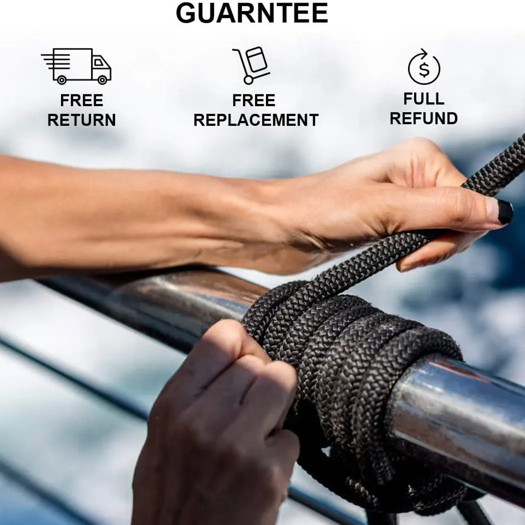 Garantía de satisfacción del 100%: las cuerdas de cuerda de amarre para barcos de nailon ecológico mantienen su barco seguro en el muelle, estas cuerdas de muelle pesadas y duraderas están garantizadas para permanecer tan buenas como nuevas durante mucho tiempo. Sin embargo, si no estás totalmente encantado con tu compra por cualquier motivo. ¡Las líneas de muelle de nailon doble trenzado verde están cubiertas por nuestra garantía de satisfacción!