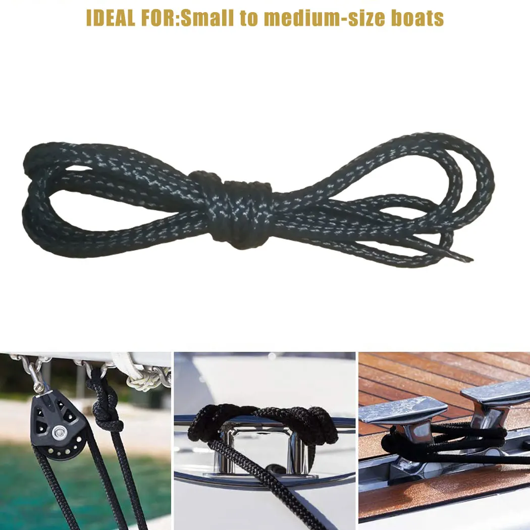 MATERIAL de nailon de grado marino: El nailon de grado marino es, con mucho, el material superior utilizado para las líneas de muelle porque puede soportar los entornos hostiles de UV, agua salada, aceite y molde. Y el nailon de doble trenzado no se dobla ni gira bajo cargas pesadas a la vez que mantiene una sensación suave que no moldea en el acabado de su barco. Tiene una combinación ideal de disminución del estiramiento y mayor absorción de impactos.